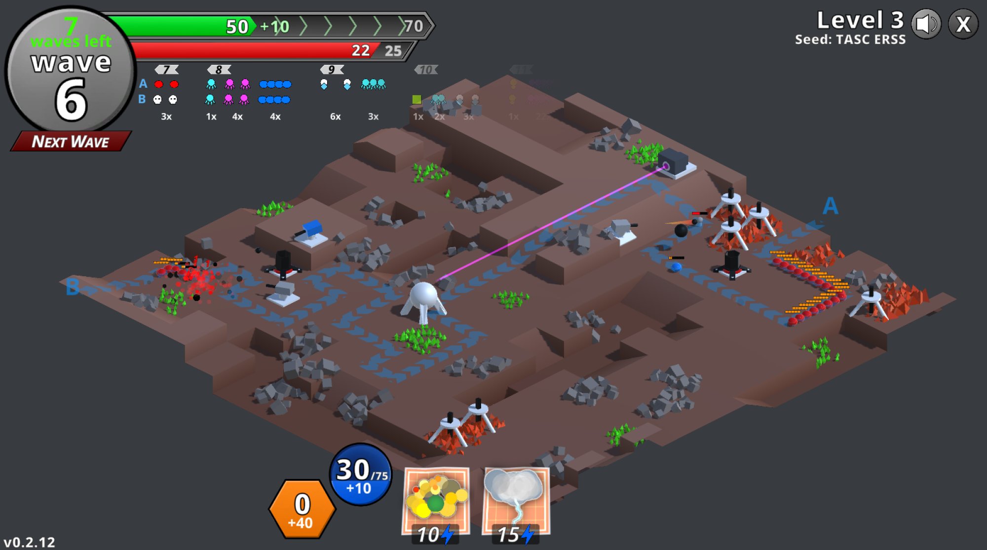 Tento projekt se zabývá vývojem hry kombinující žánr tower defense s prvky z rogue-like her. Mým hlavním cílem bylo vytvořit hru, ve které hráči brání svoji základnu proti vlnám útočníků pomocí obranných věží, v sérii náhodně generovaných úrovní. V průběhu hry sbírají nové věže a plány, které jim umožňují postupně se přizpůsobovat rostoucí obtížnosti a zkoušet různé strategie.