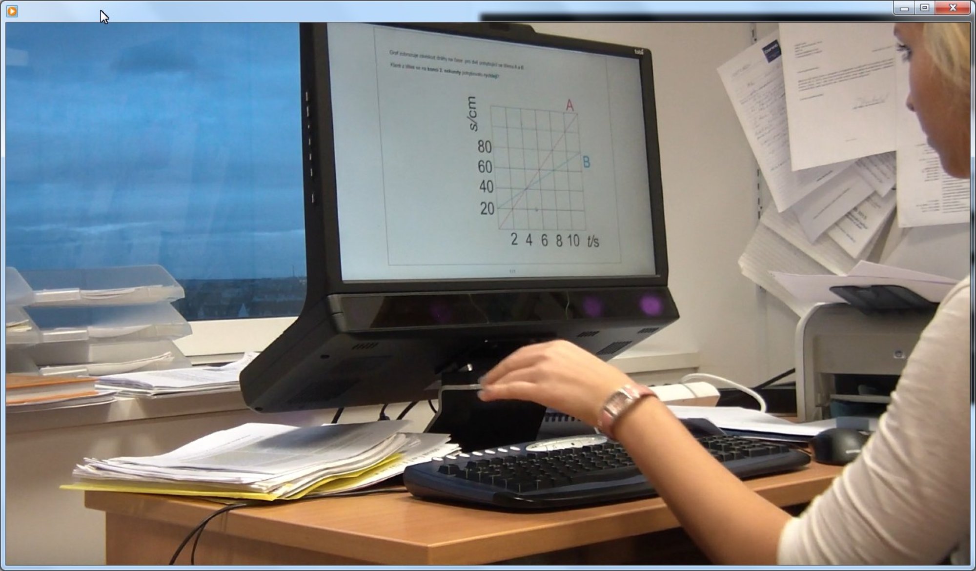 Sledování očních pohybů žáka při pohledu na obrazovku umožňuje zjistit zaměření jeho pozornosti na jednotlivé části obrazu. Na obrazovku můžeme promítat například nějakou typickou testovou úlohu a z pozornosti žáka vyvozovat jeho strategii při řešení dané úlohy.