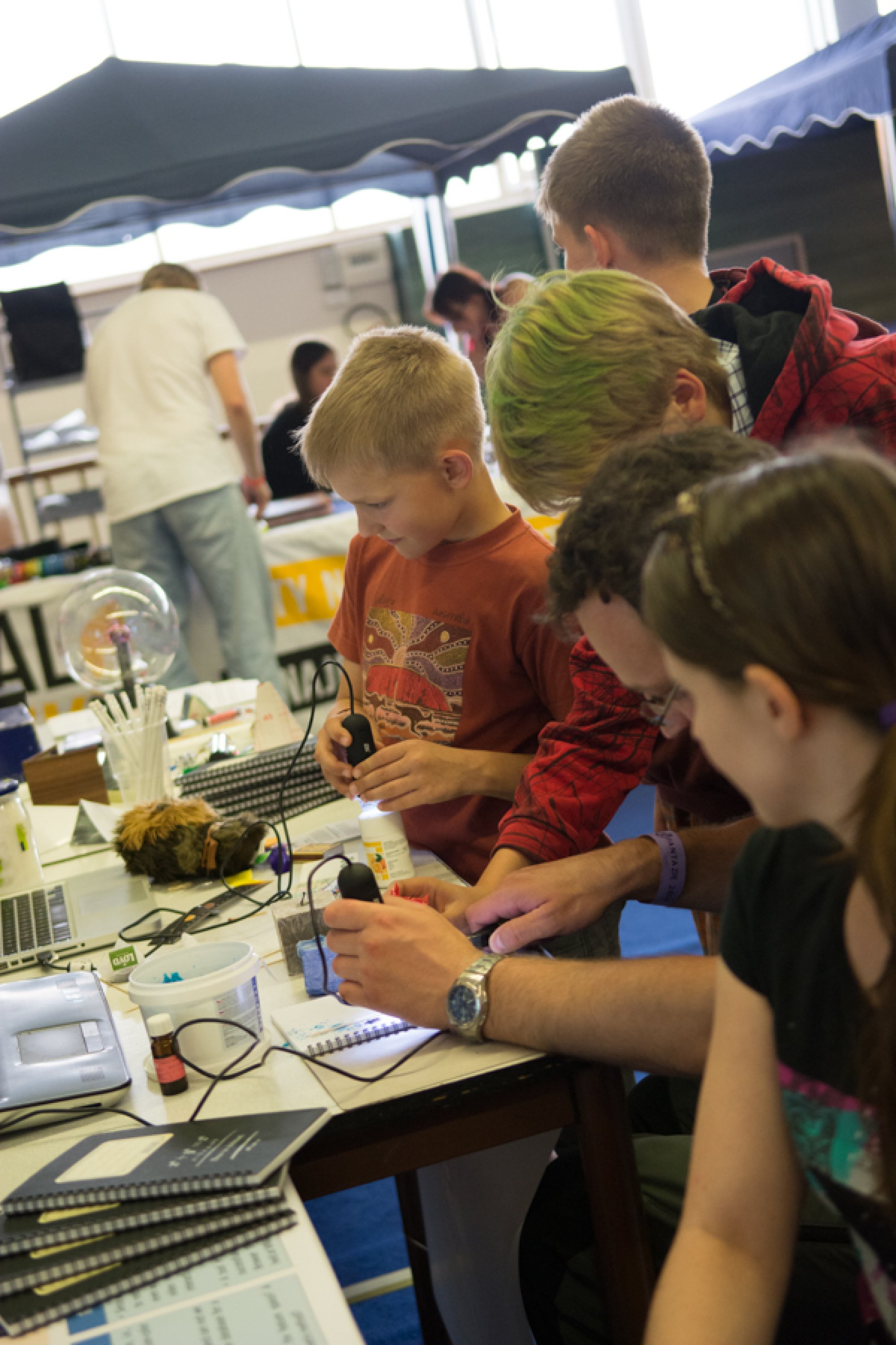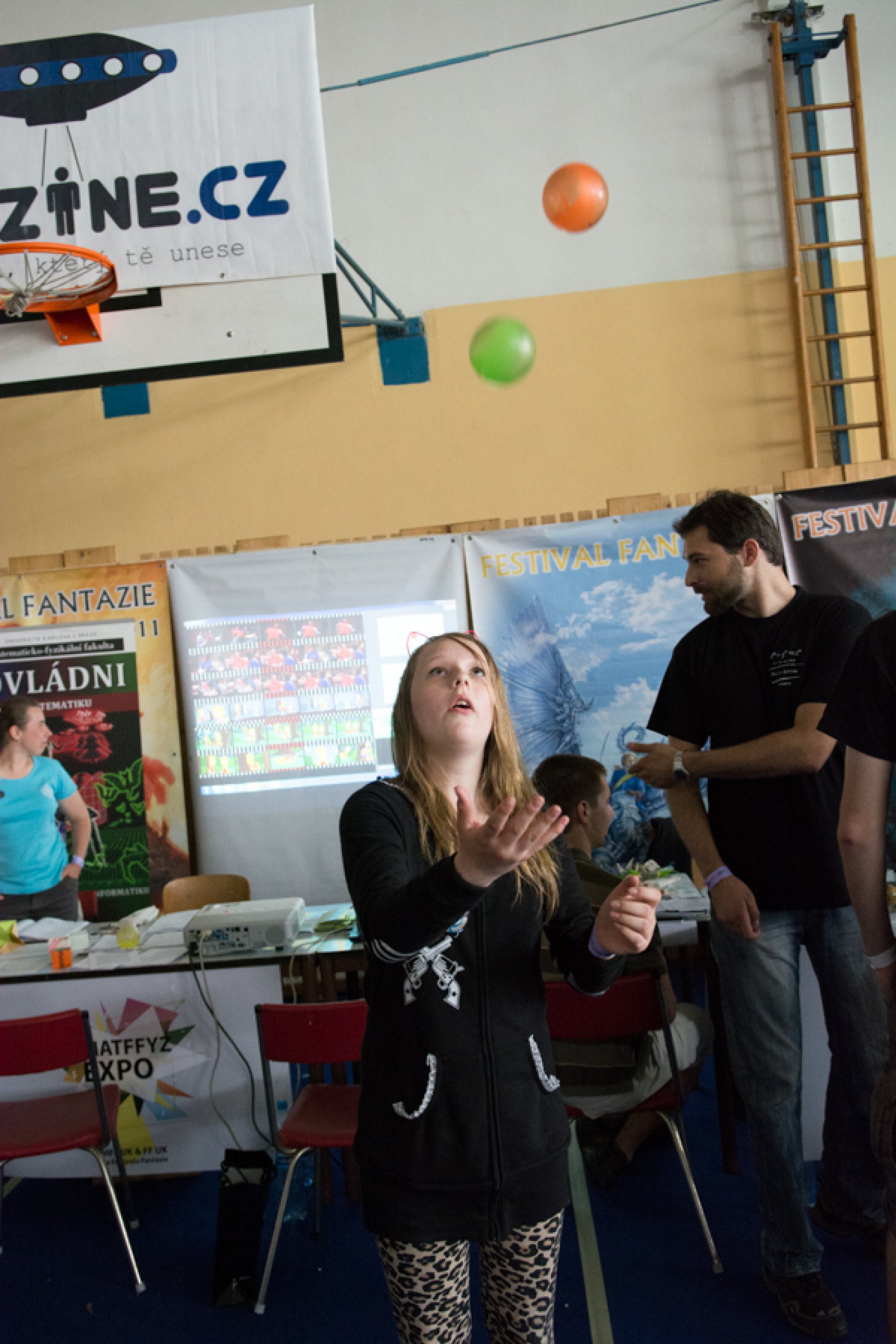 Jako první se z matfyzáckého Expa představily stánky s fyzikálními pokusy, geometrickými hrátkami a dalšími „kouzly“. Během prvních hodin festivalu přitáhly stánky pozornost mnoha desítek návštěvníků. Ti si zvídavě prohlíželi složitá prostorová tělesa, jejichž těžiště byla jinde, než se na první pohled zdálo, pomocí podtlaku zvětšovali pěnové bonbony do neúnosných rozměrů nebo se divili, proč magnetu vhozenému do duté tyče trvá tak dlouho, než vypadne ven.