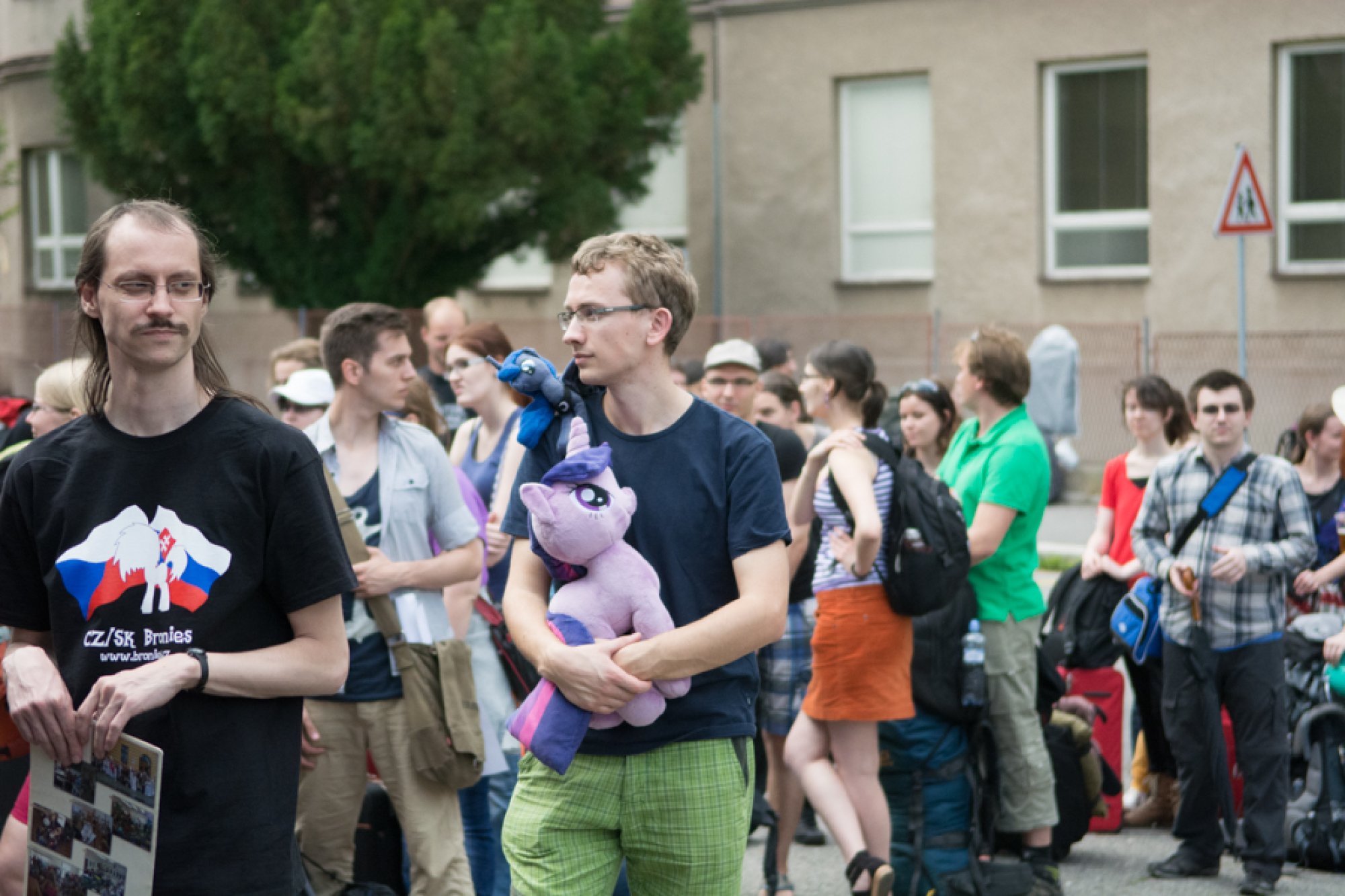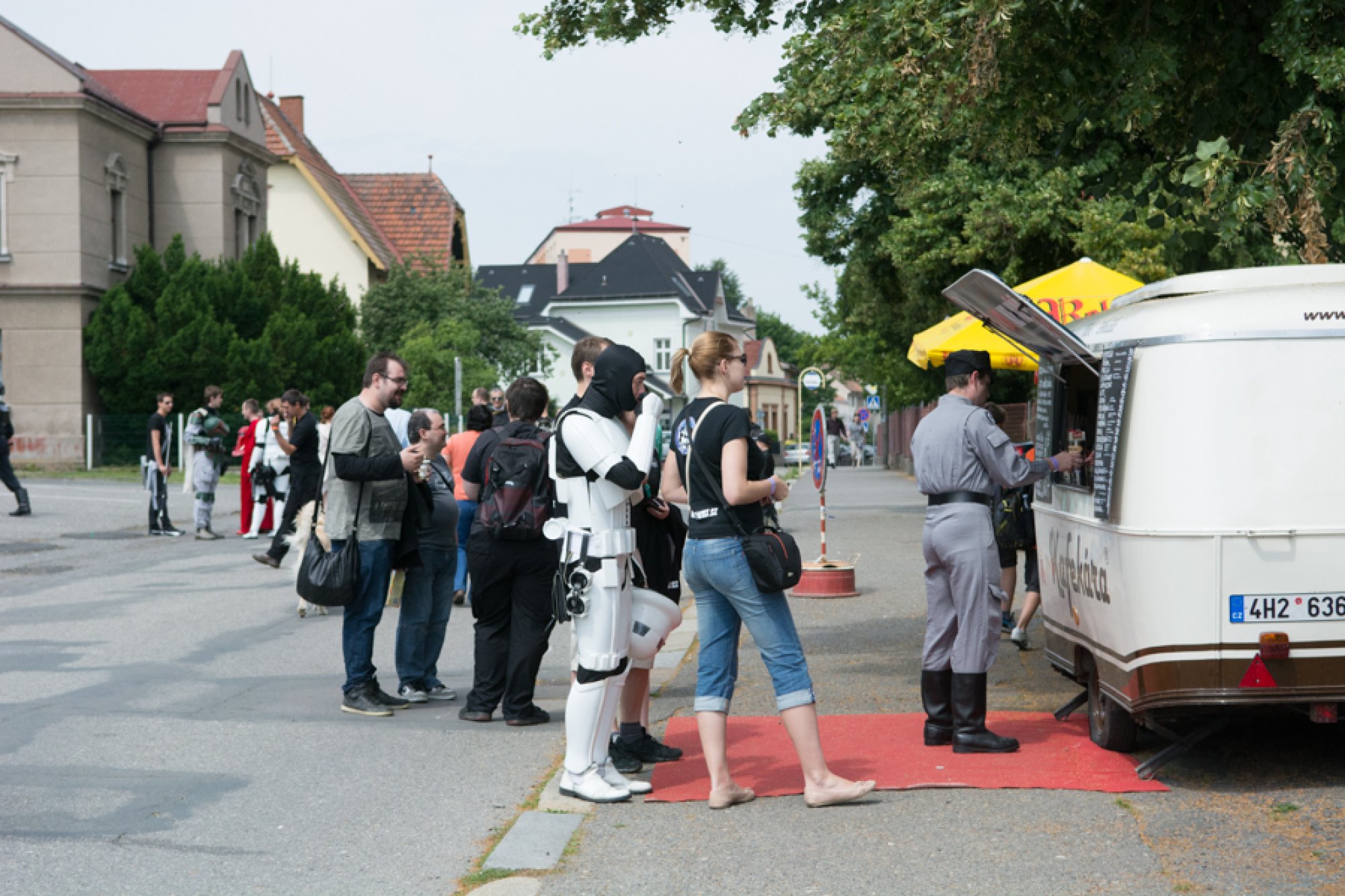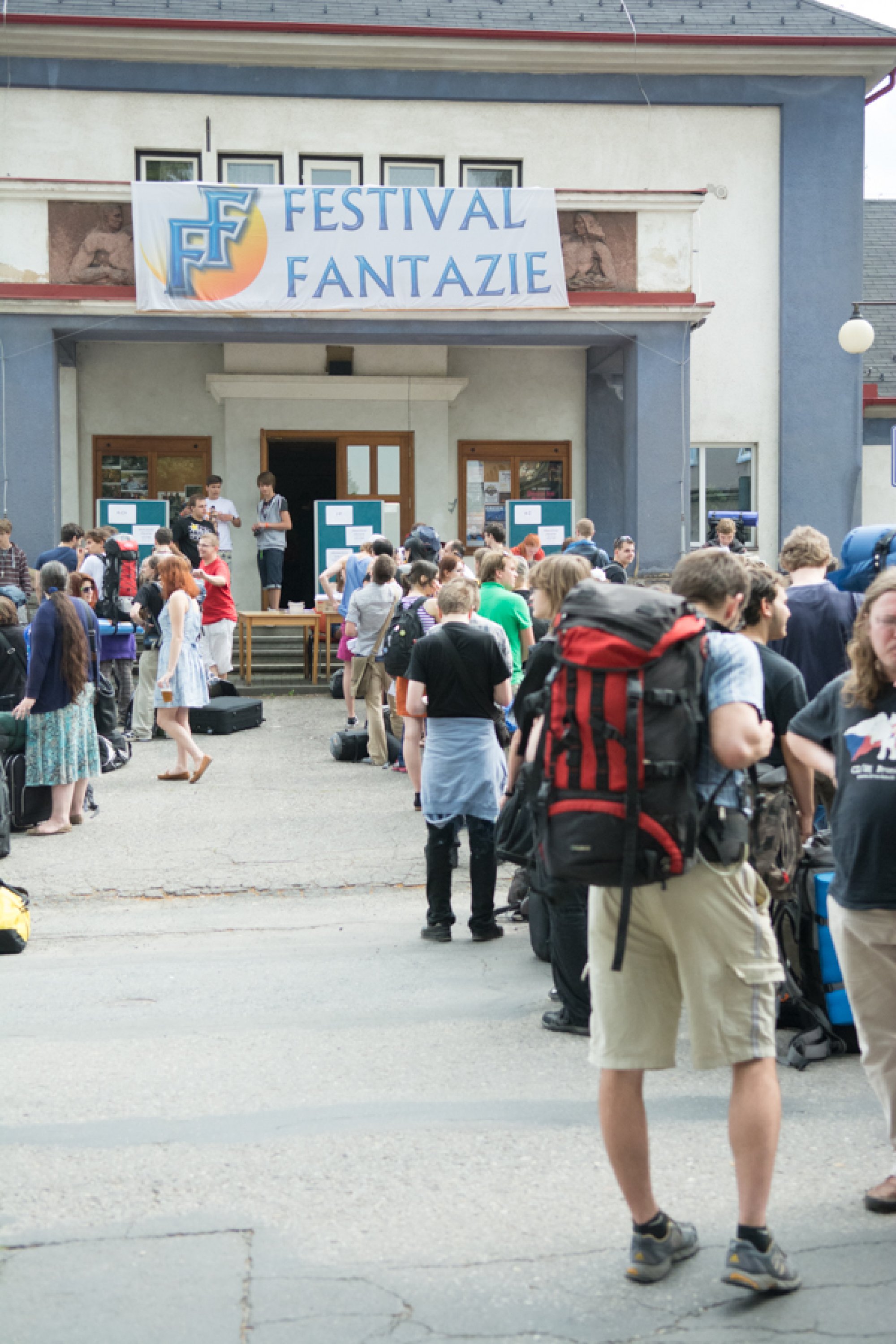 Na místě je krátce po poledni přivítaly zatím ještě tiché budovy, které čekaly, až je naplní fanoušci sci-fi, fantasy, hororu a dalších žánrů. Pouze festivalové transparenty a pobíhající organizátoři v oranžových tričkách singalizovali, že tady za pár hodin odstartuje největší festival popkultury v Čechách.