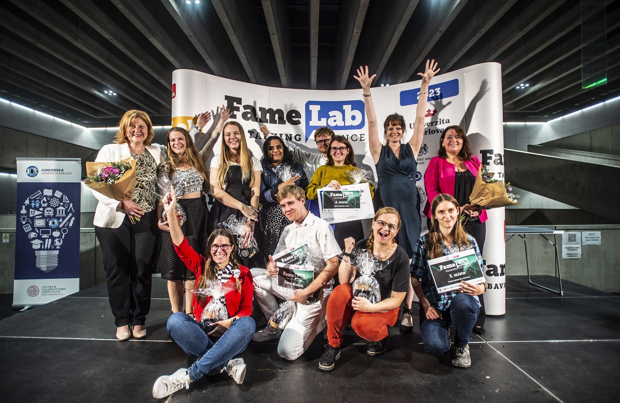 Koncem září se na Fakultě humanitních studií v Troji uskutečnilo národní finále stand-upové soutěže FameLab 2023. Mezi devíti finalisty, kteří měli v krátkém čase přesvědčit publikum o tom, že věda není nuda, byla také Zuzana Procházková z Matfyzu. Studentka meteorologie a klimatologie si za své tříminutové vystoupení s názvem Bude dnes pršet? vysloužila bronzovou příčku.