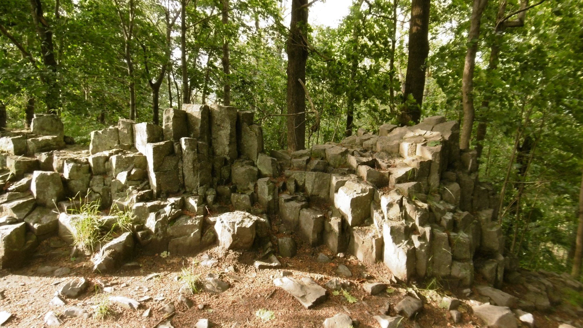 Na vrcholu nenápadného kopce s nadmořskou výškou 581 metrů nad mořem (jeho vrchol je jen asi 120 výškových metrů nad úpatím) zaujmou na první pohled šestiboké kamenné sloupy. Vlčí hora je vulkanického původu, ve třetihorách zde probíhala sopečná činnost, díky které vznikly pod povrchem čedičové horniny. A ty byly vlivem zvětrávání v průběhu miliónů let odkryty, v současné době je proto nalezneme na povrchu v podobě typických šestibokých hranolů. Pro nás je podstatné, že vyvřeliny na Vlčí hoře obsahují velké množství magnetitu – magnetické horniny. Vyzkoušejte si, jak se tu bude chovat váš kompas, jen ho tady rozhodně nelze doporučit pro hledání severu. Místní zdroje píší o výchylce střelky až o 40° od severního směru, náš kompas se při položení přímo na čedičové sloupy vychyloval na některých místech skoro o dvojnásobek.