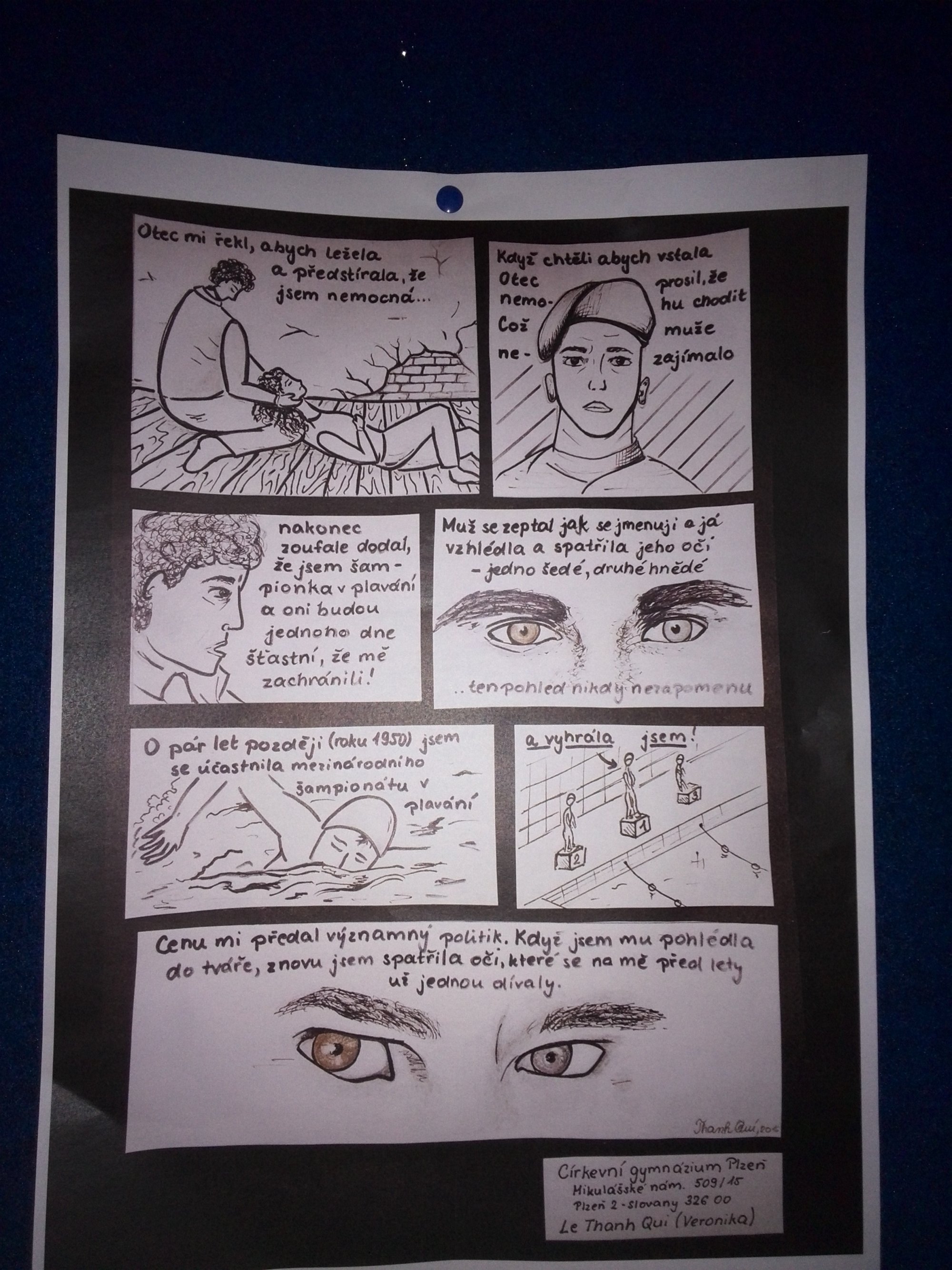 Pomyslná druhá příčka připadla Le Thanh Qui alias Veronice za zpracování příběhu Evy Székelyové. Veronika je studentkou septimy Církevního gymnázia v Plzni, kde si vybrala humanitní zaměření. „Ve škole právě probíráme holokaust, tak mě napadlo, že by mi videa mohla pomoct při přípravě na testy a zkoušky. Pustila jsem si několik rozhovorů a překvapilo mě, jak byly všechny zajímavé,“ dodala autorka druhého nejlepšího komiksu.