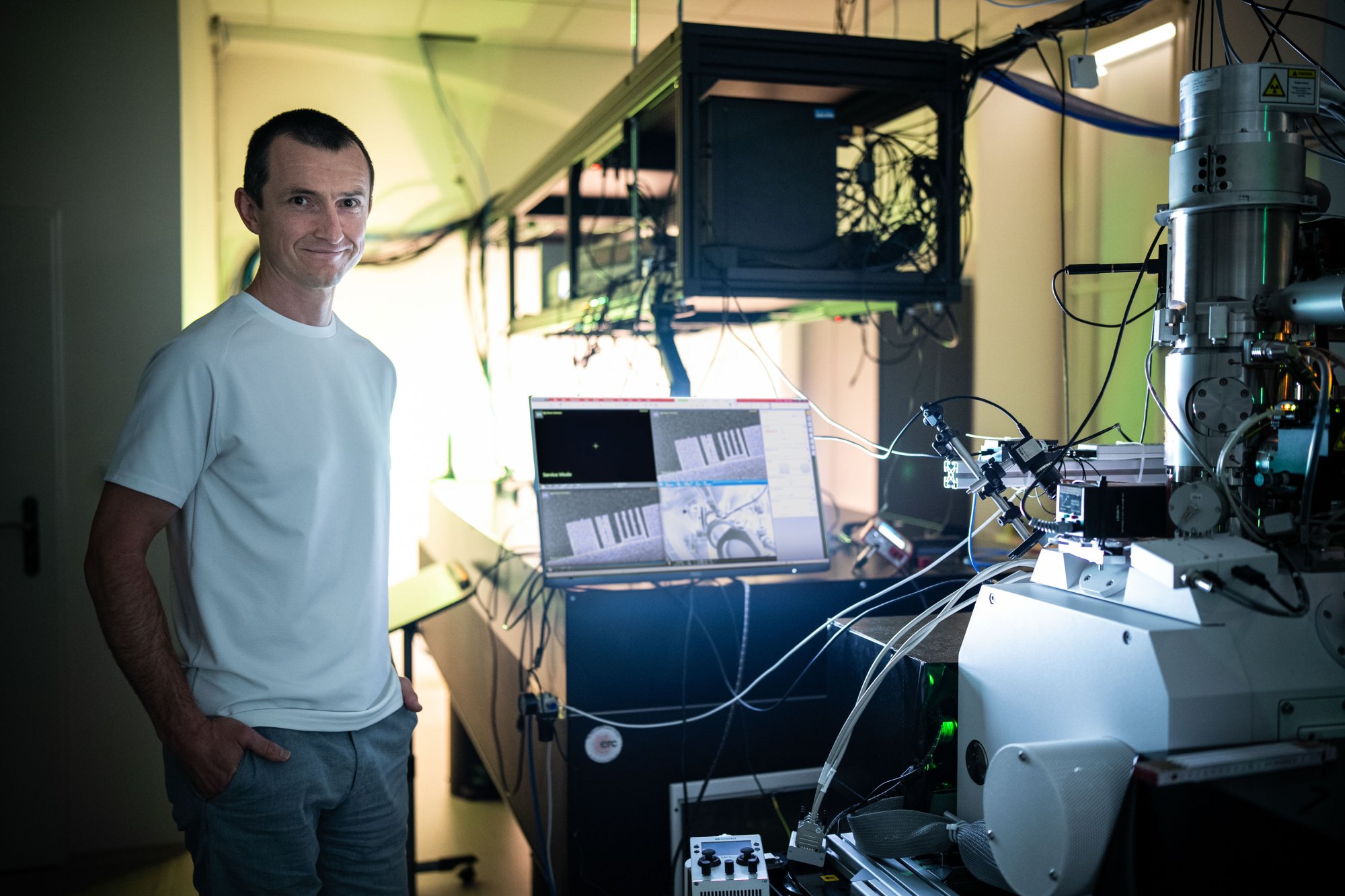 Elektronový mikroskop, který vyrobila česká firma, přitom v jeho laboratoři prošel zásadní proměnou. „Celý mikroskop jsme museli upravit, abychom do něj dostali optiku a optomechaniku, kterou potřebujeme na úpravu laserových svazků mířících do vakuové komory mikroskopu,“ přibližuje rok trvající práci na aparatuře, kterou s nadsázkou připodobňuje ke své oblíbené hračce z dětství. „Mikroskop neustále vylepšujeme, opravujeme, měníme konfiguraci součástek atd. V dětství bývalo mojí nejoblíbenější hračkou lego, dalo by se říct, že teď máme v laboratoři taky takovou stavebnici, jenže o dost větší a dražší,“ směje se vedoucí skupiny, která už má na svém kontě několik publikací v prestižních vědeckých časopisech.