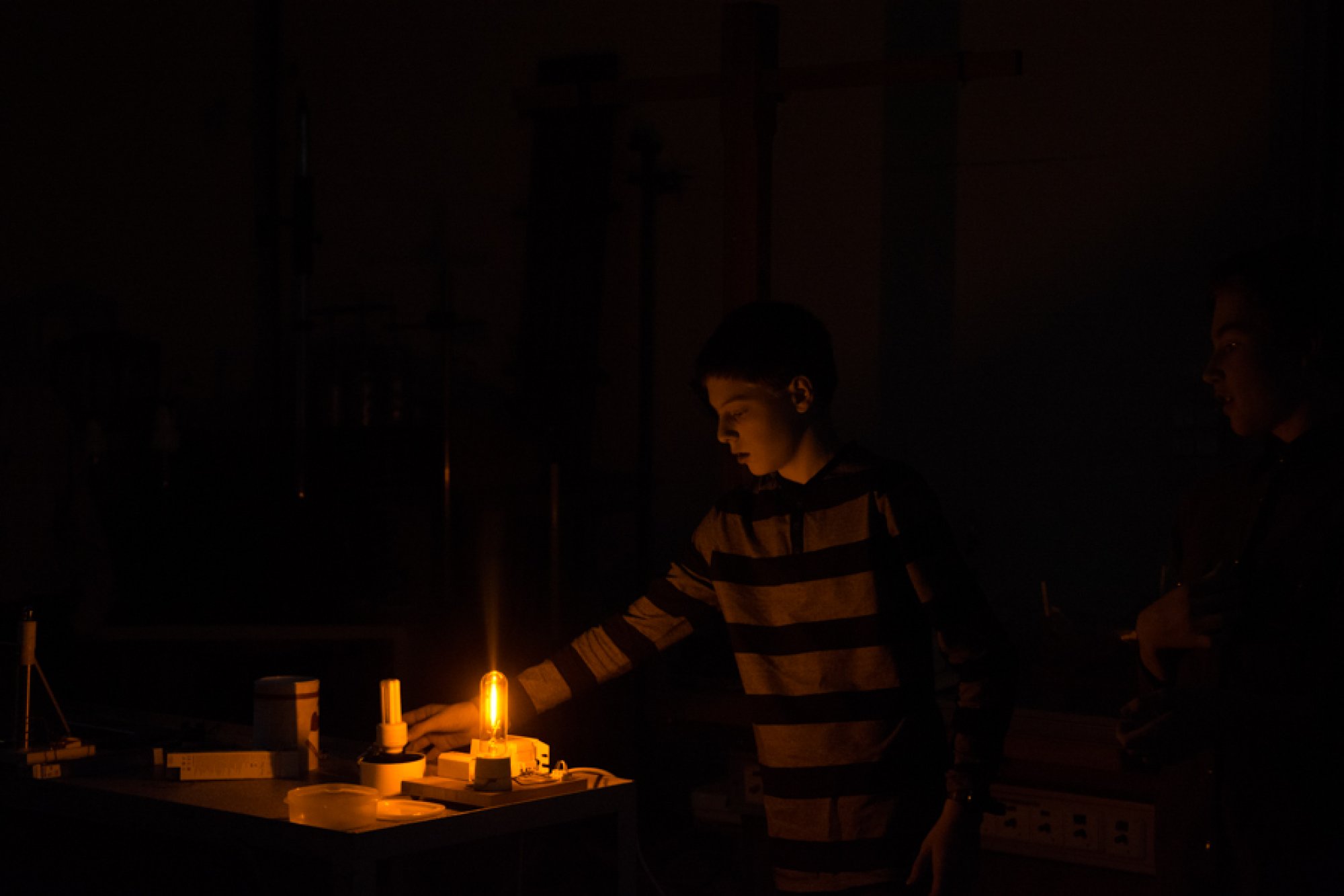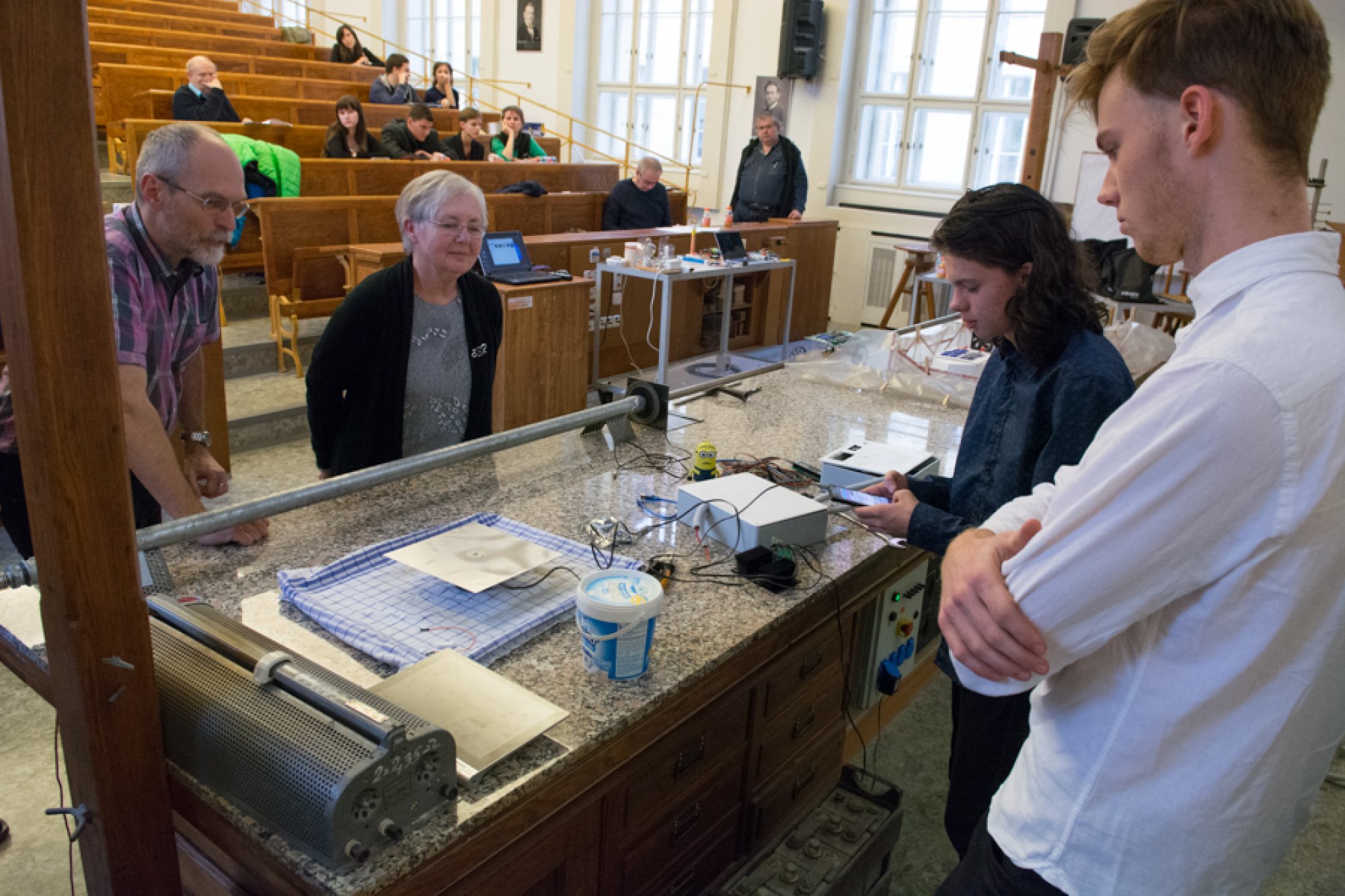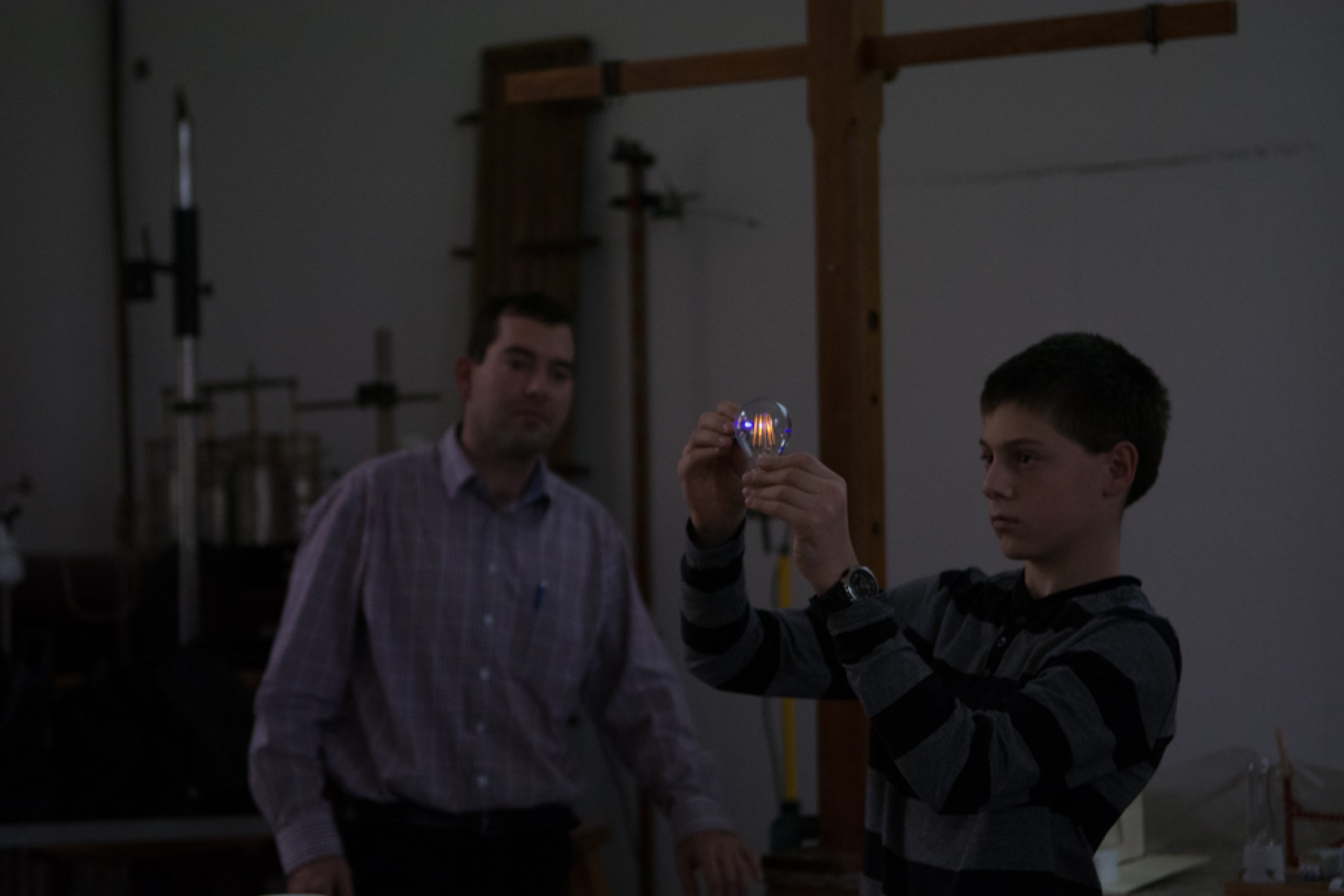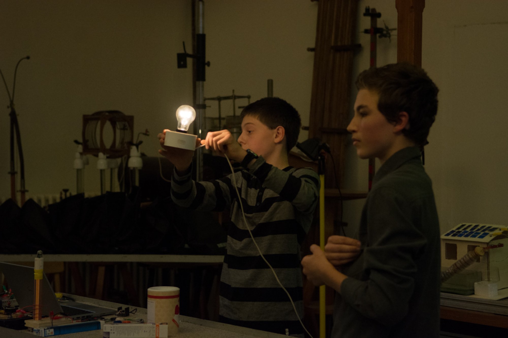 Jejich mladší kolegové, Oto Ulrich a Štěpán Pavlica, rozdali přítomným divákům spektroskopy, které vyrobili z krabiček od sirek a kompaktních disků. S jejich pomocí mohli všichni na vlastní oči pozorovat barevná spektra žárovky, diody, zářivky a sodíkové výbojky.
