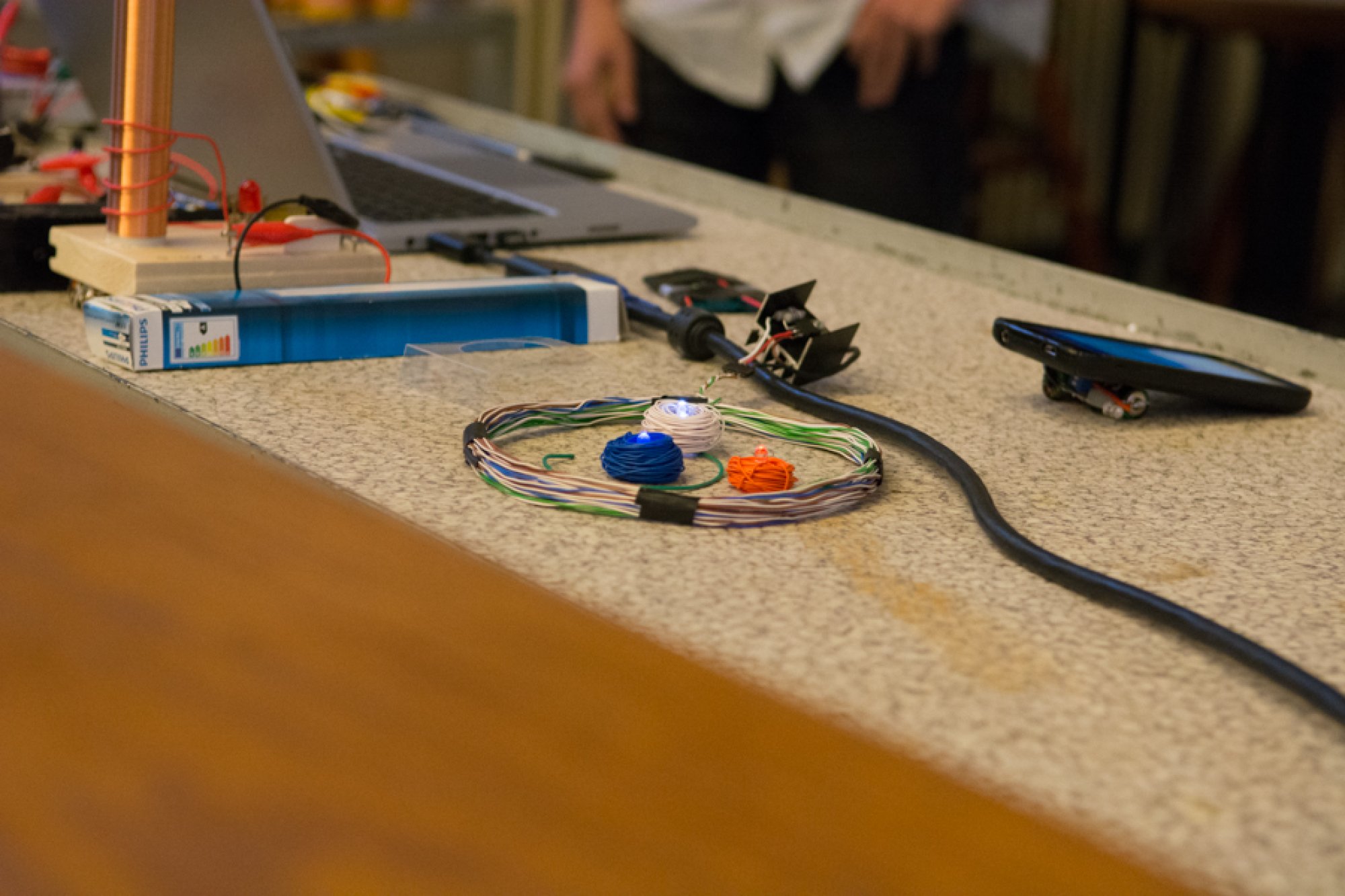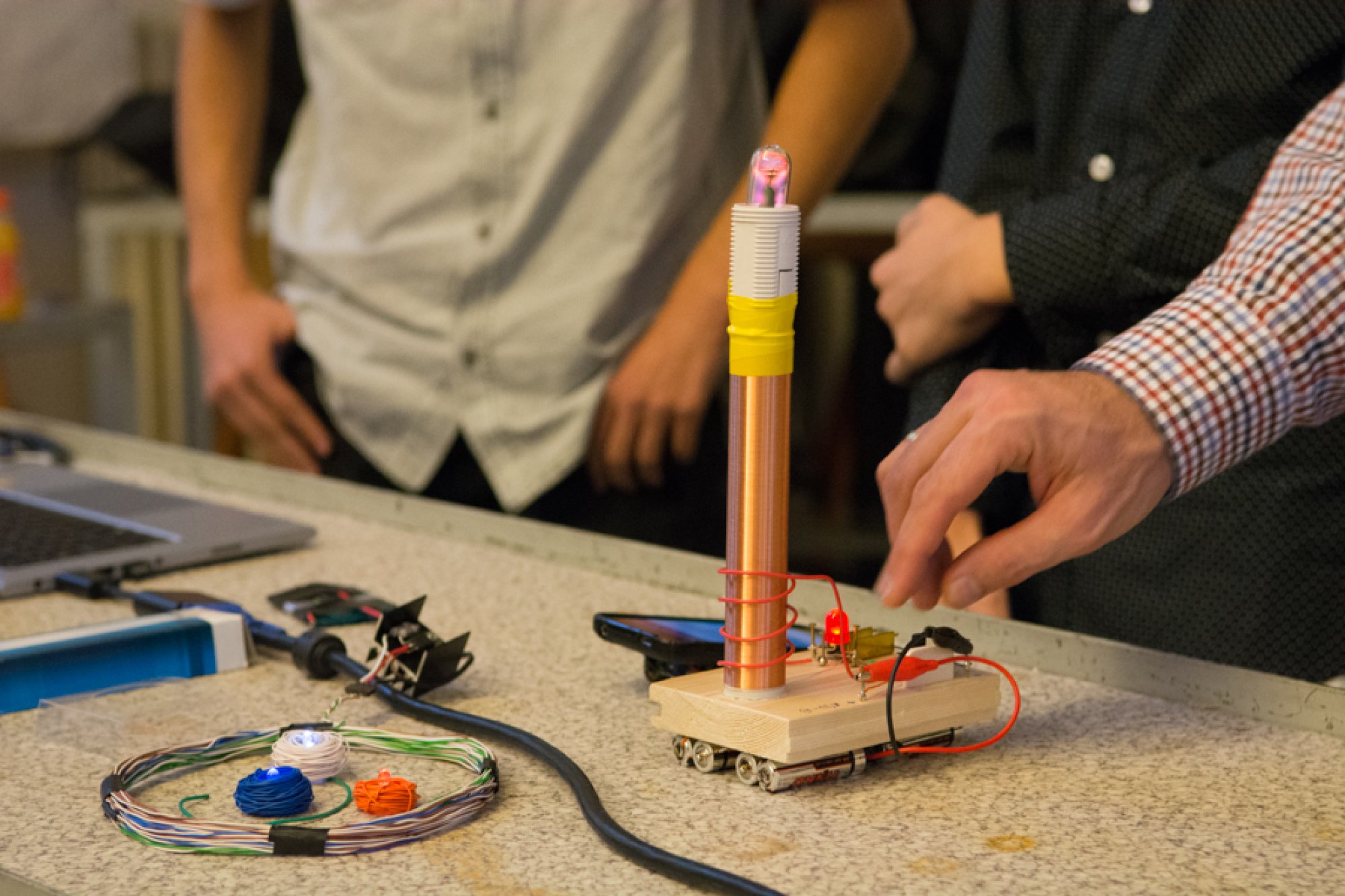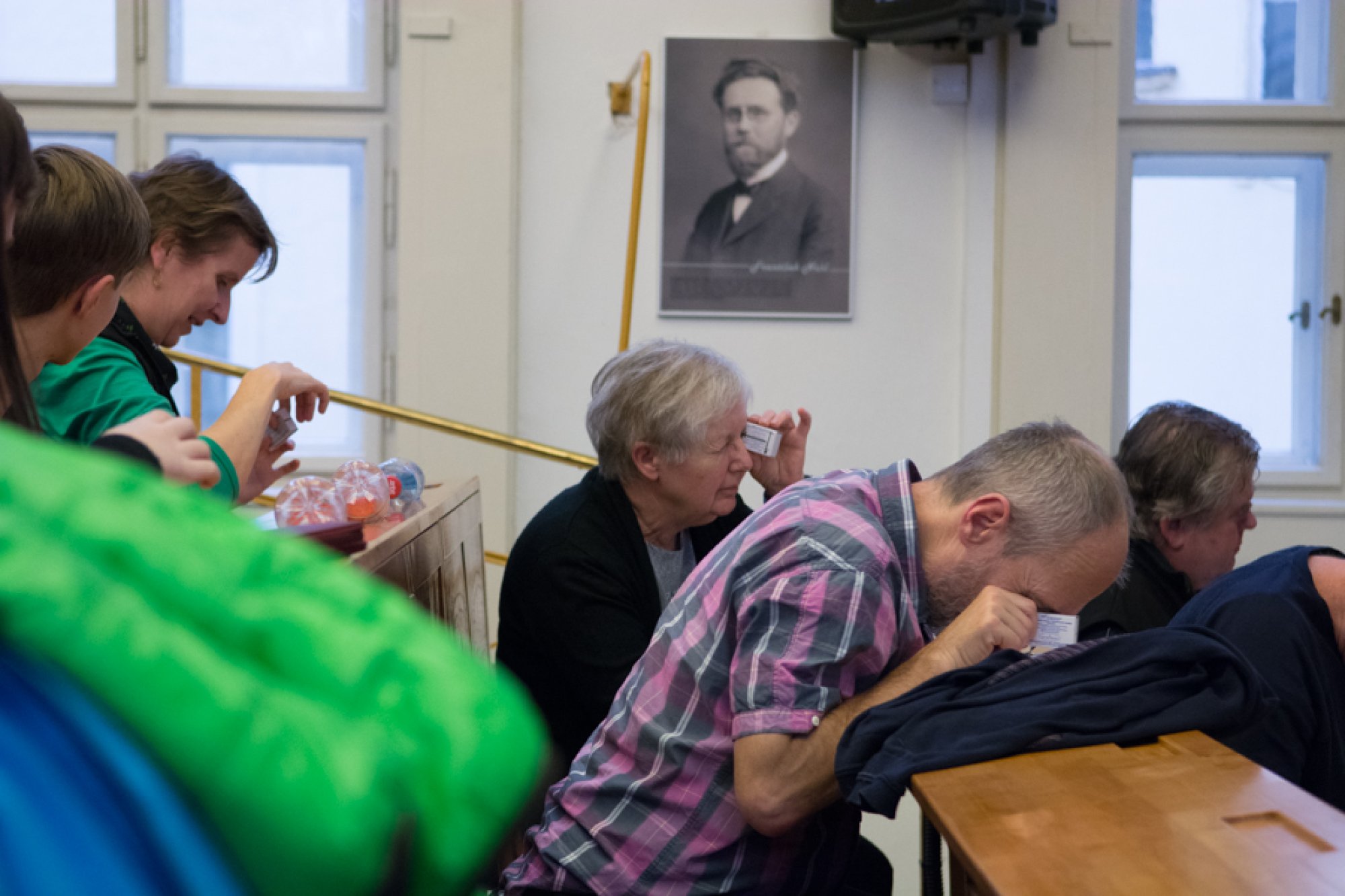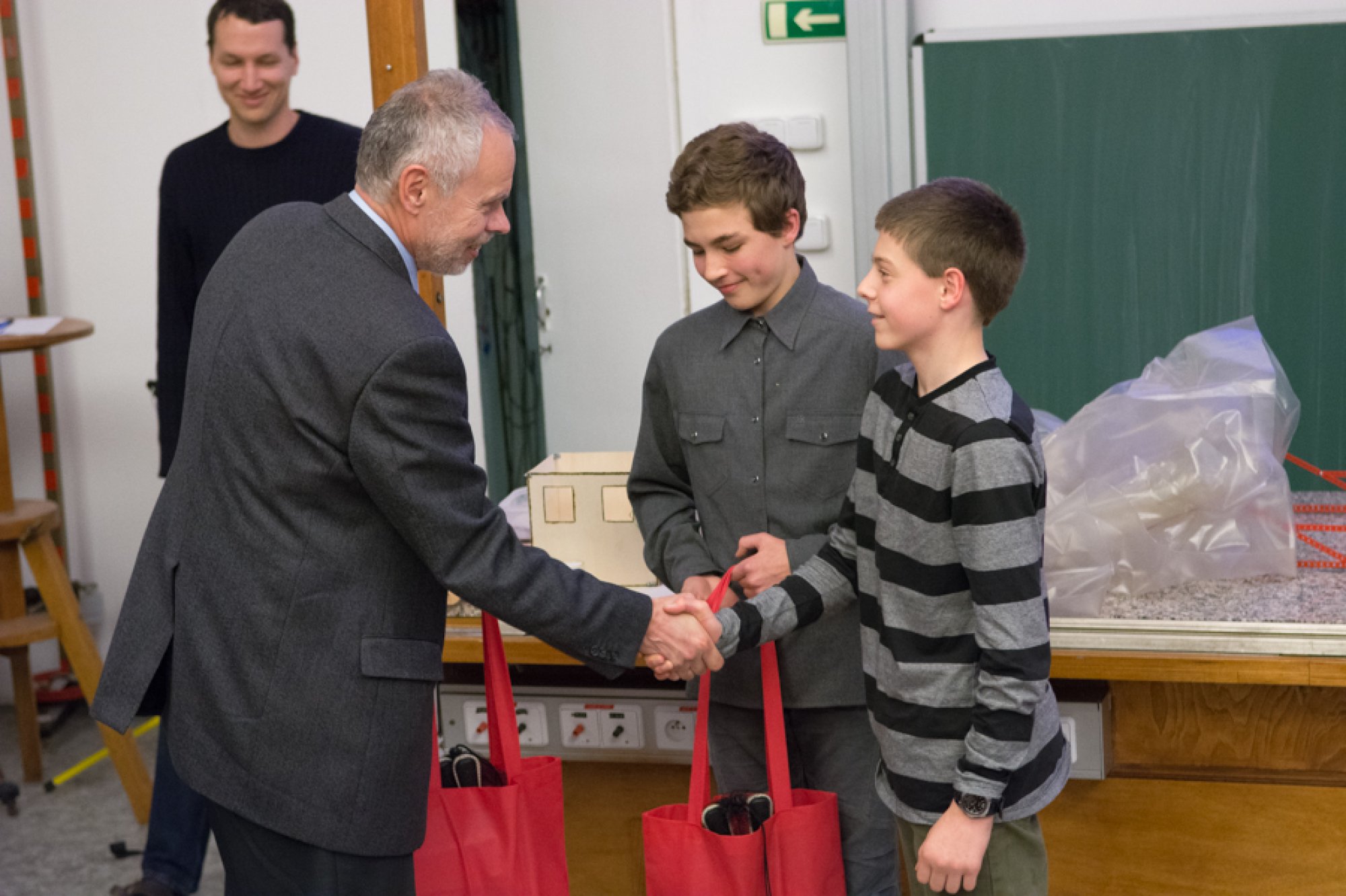 Jejich mladší kolegové, Oto Ulrich a Štěpán Pavlica, rozdali přítomným divákům spektroskopy, které vyrobili z krabiček od sirek a kompaktních disků. S jejich pomocí mohli všichni na vlastní oči pozorovat barevná spektra žárovky, diody, zářivky a sodíkové výbojky.