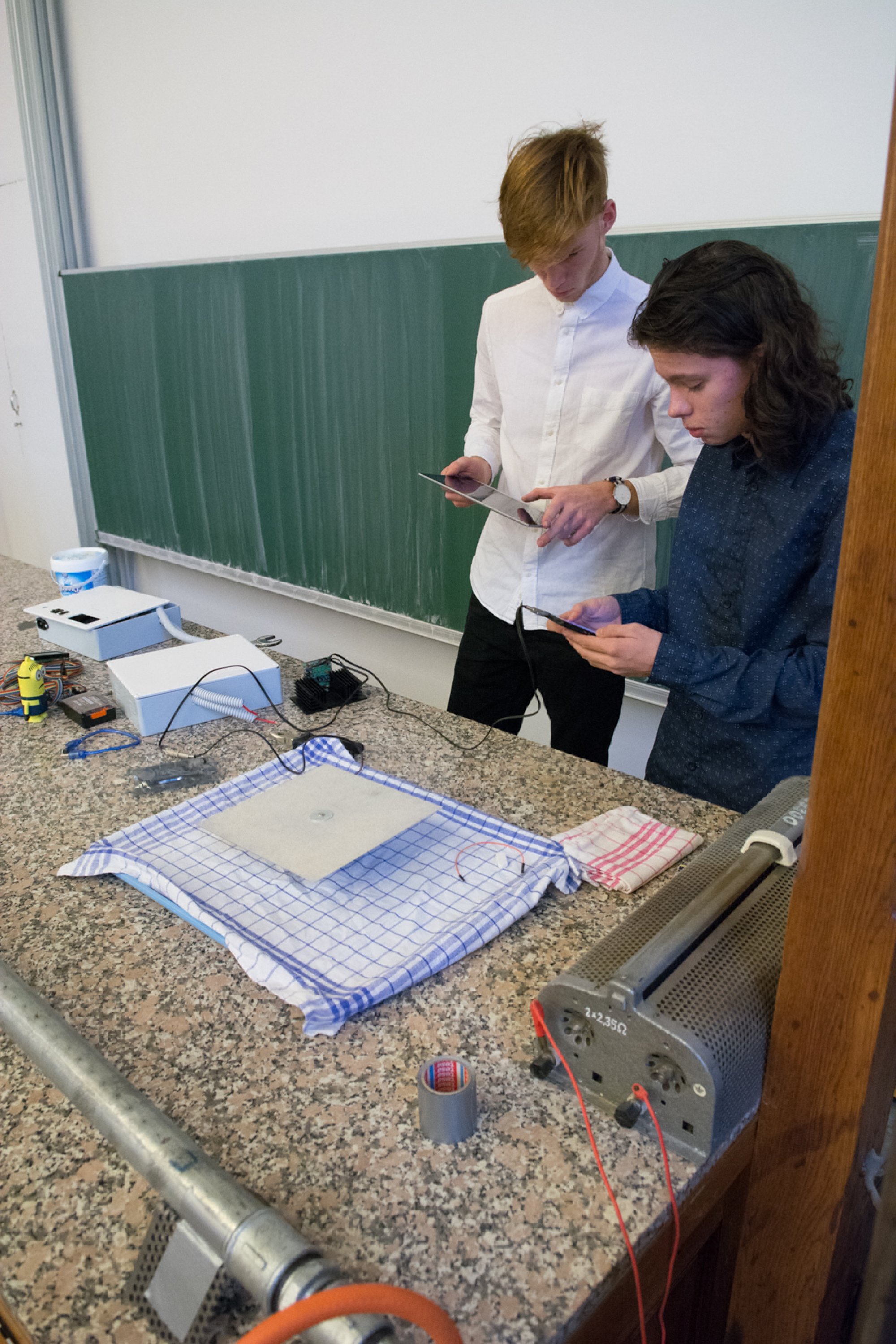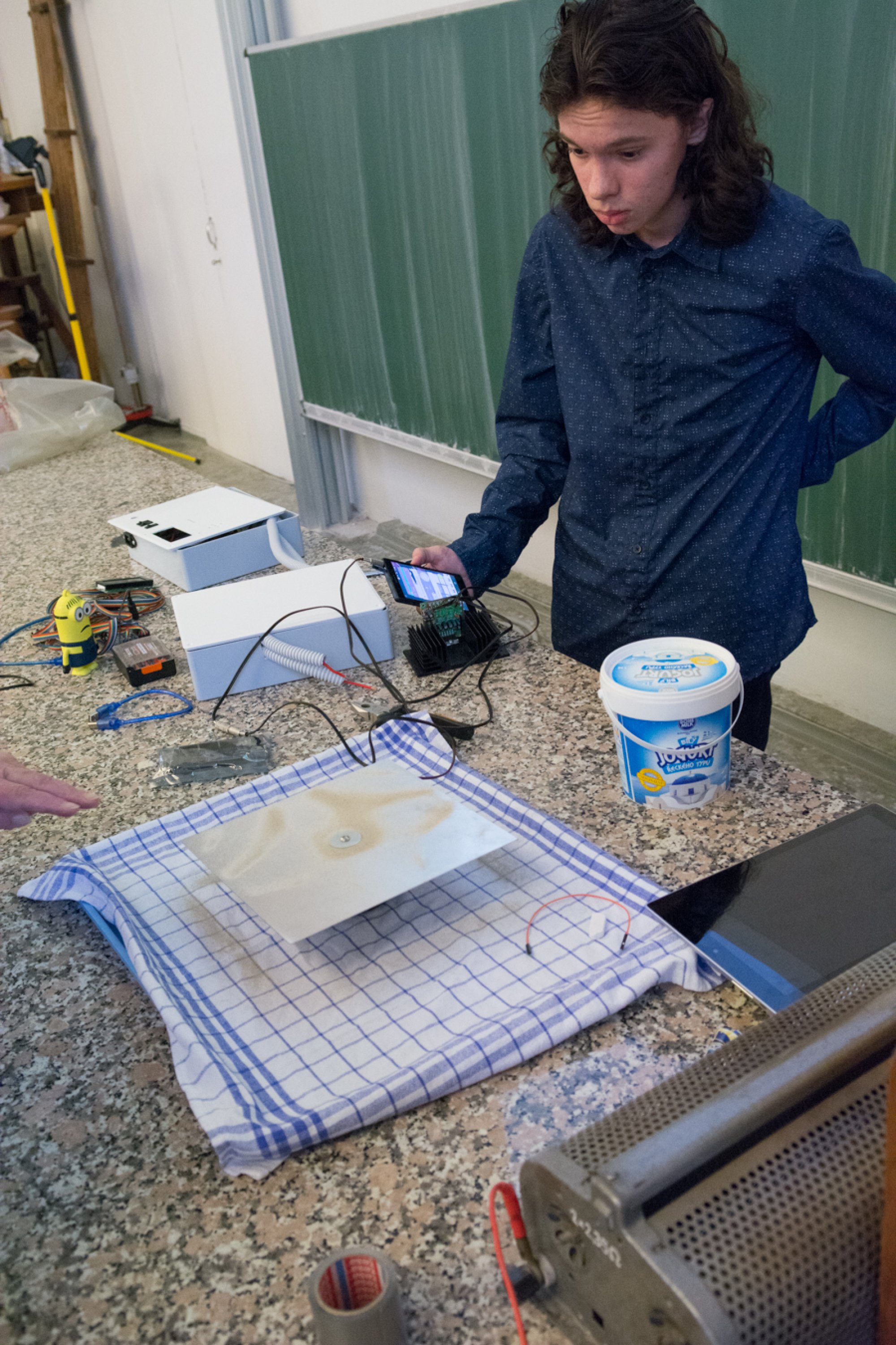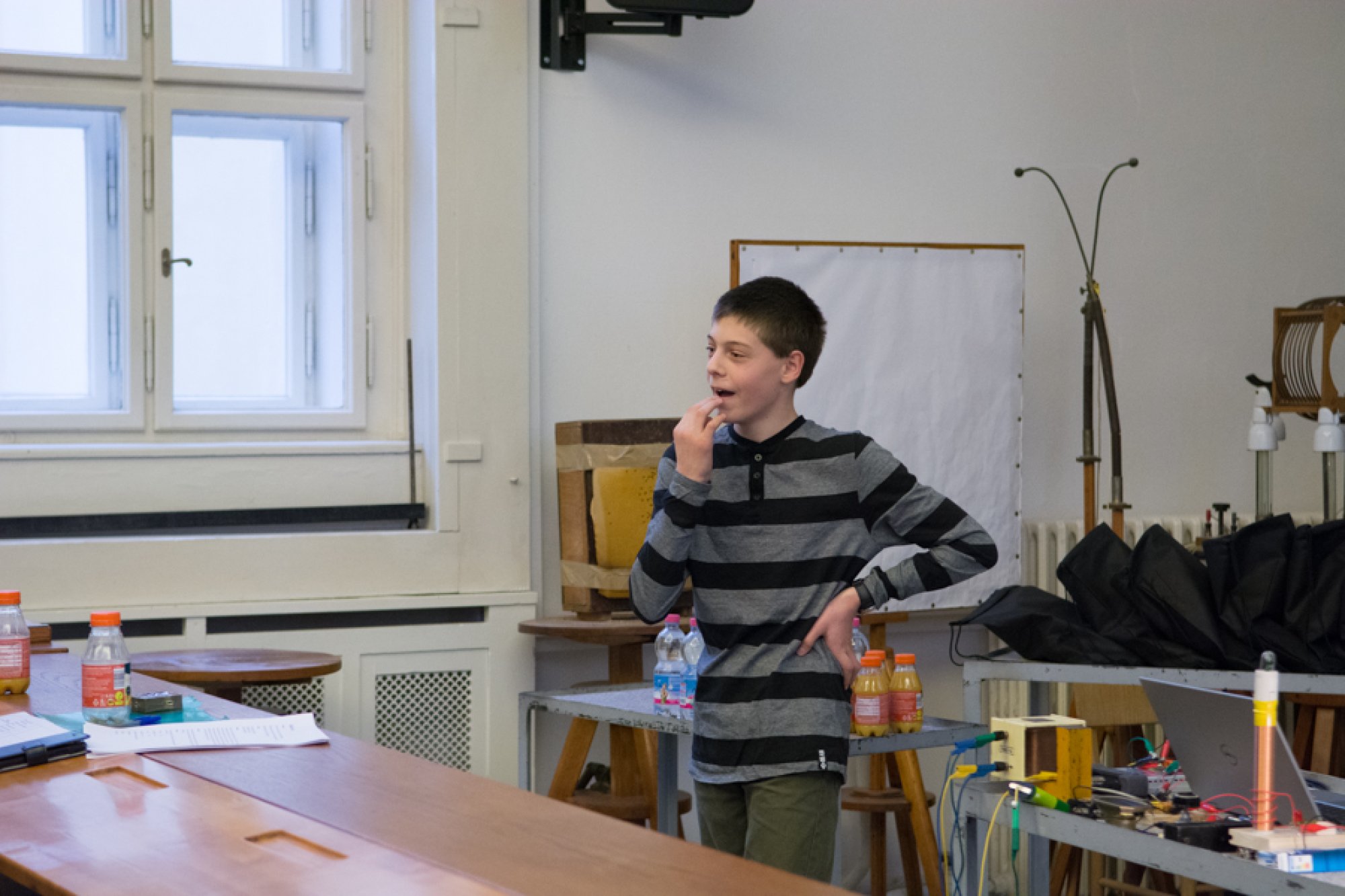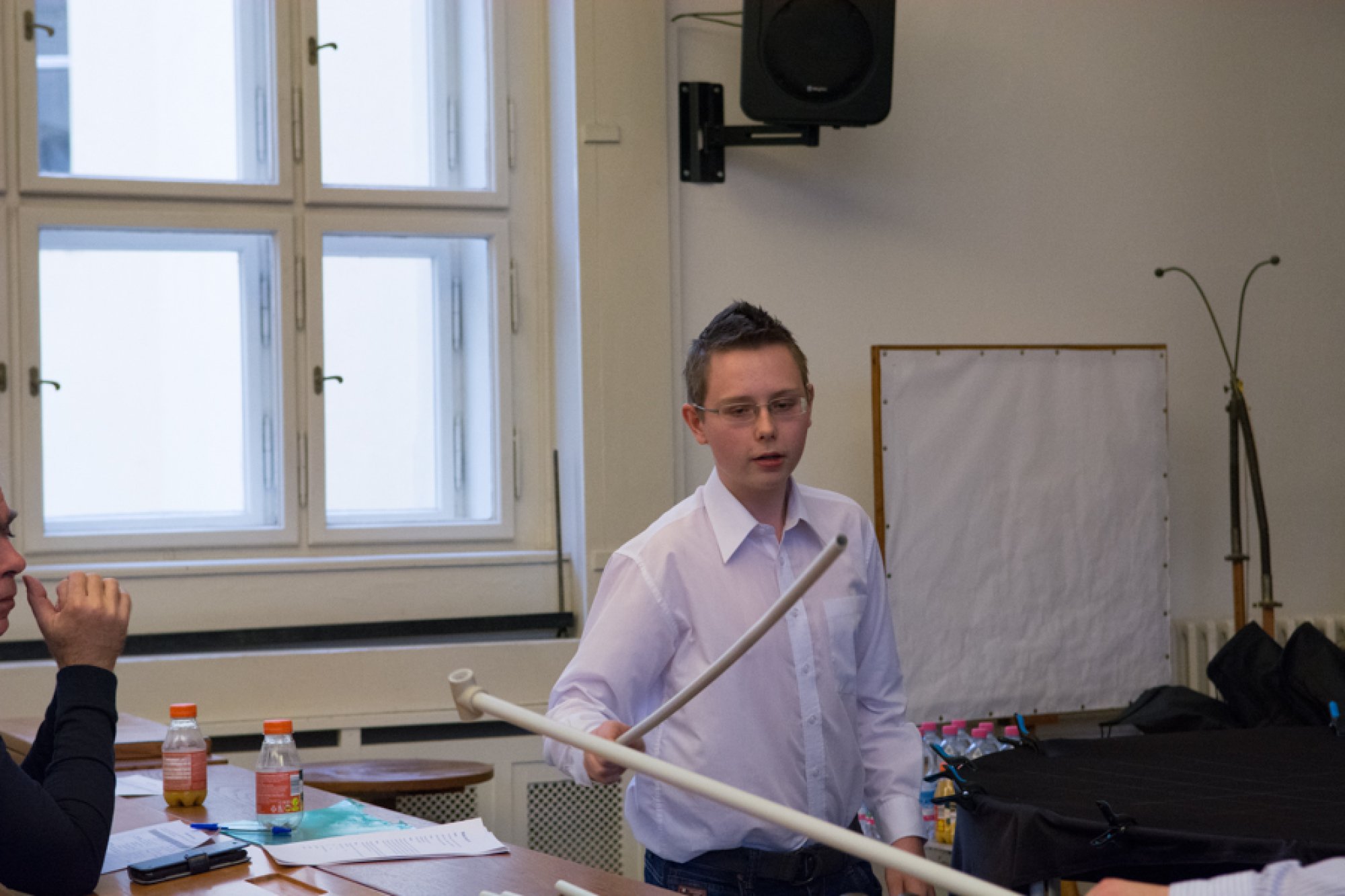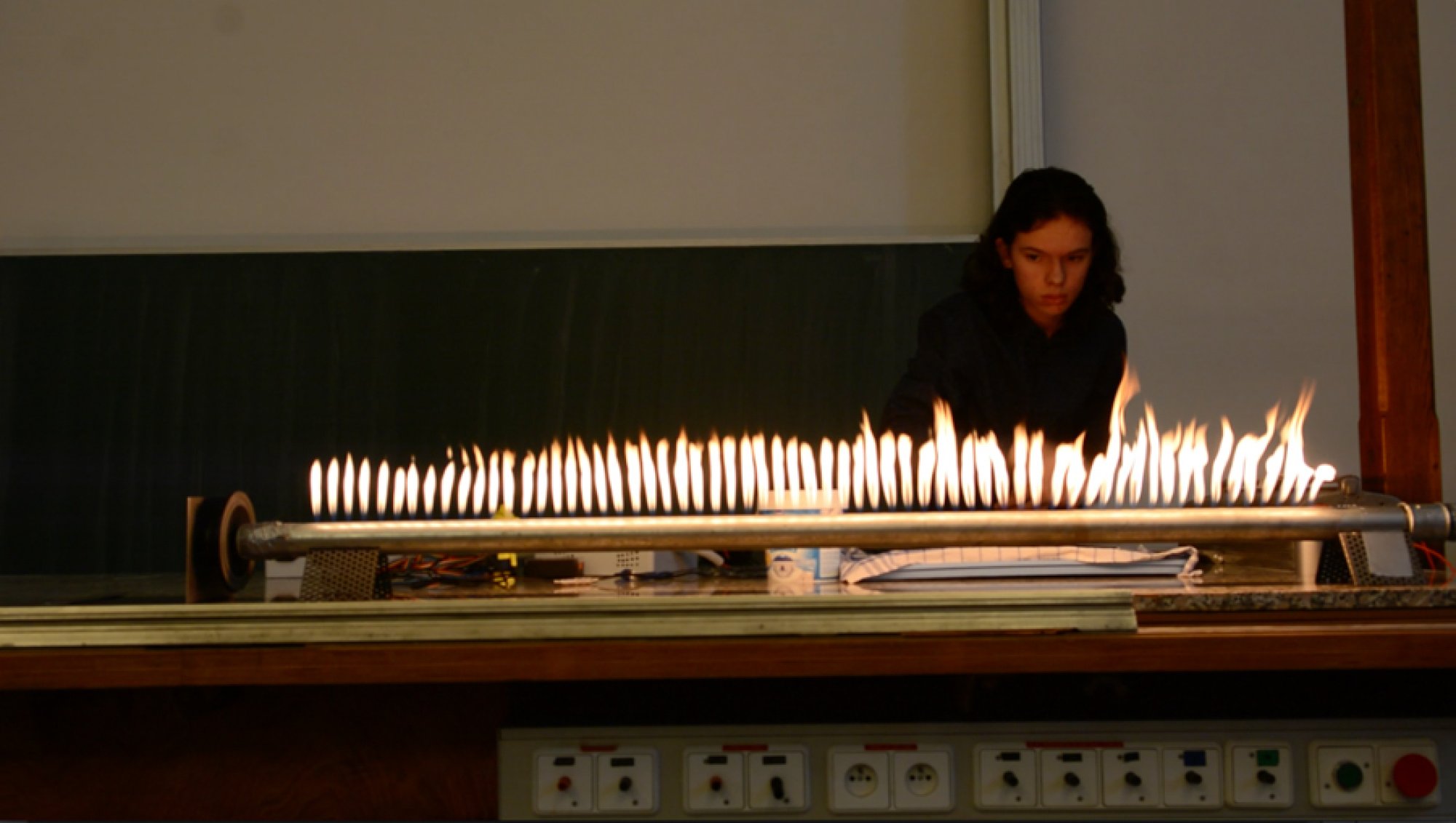 Efektní podívanou nabídly experimenty Adama Kulhánka ze Střední průmyslové školy na Proseku a Jakuba Marka z Gymnázia Christiana Dopplera v Praze. Studenty zaujala myšlenka zviditelnění zvuku, a tak spojili své síly a znalosti a vyrobili tři speciální zařízení, z nichž dvě přivezli ukázat na Matfyz. V prvním případě využili k zobrazení hudby principu tzv. Chladniho obrazců, které se při zvukových vibracích vytvářejí na tenké kovové desce pokryté jemným pískem. V druhém experimentu představili Rubensovu trubici, která akustický tlak zobrazuje pomocí plamenů hořícího plynu.