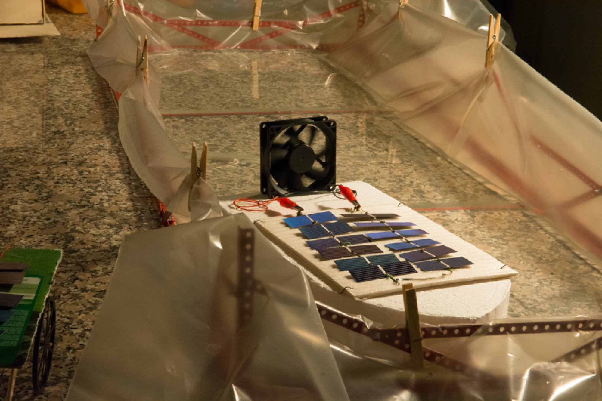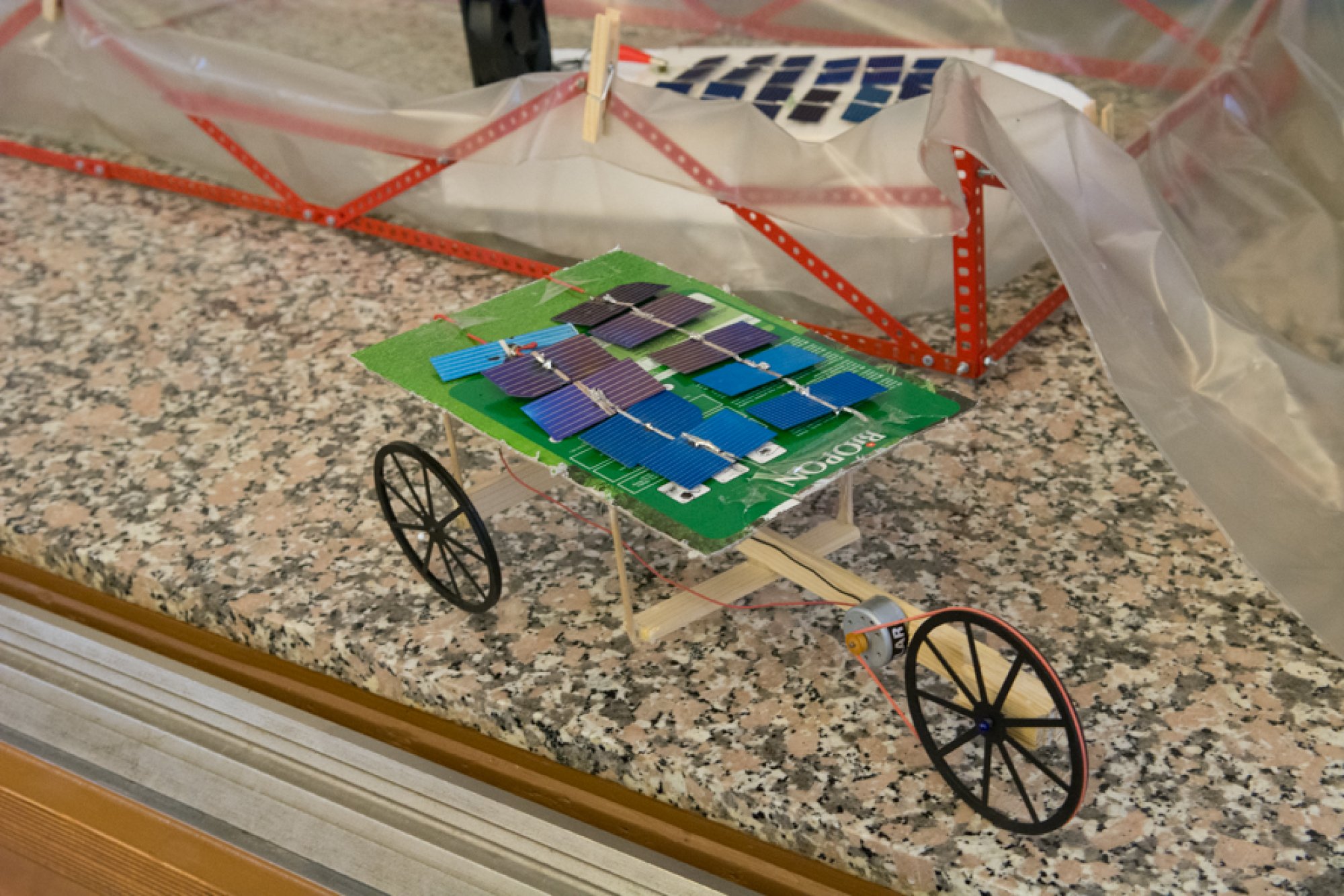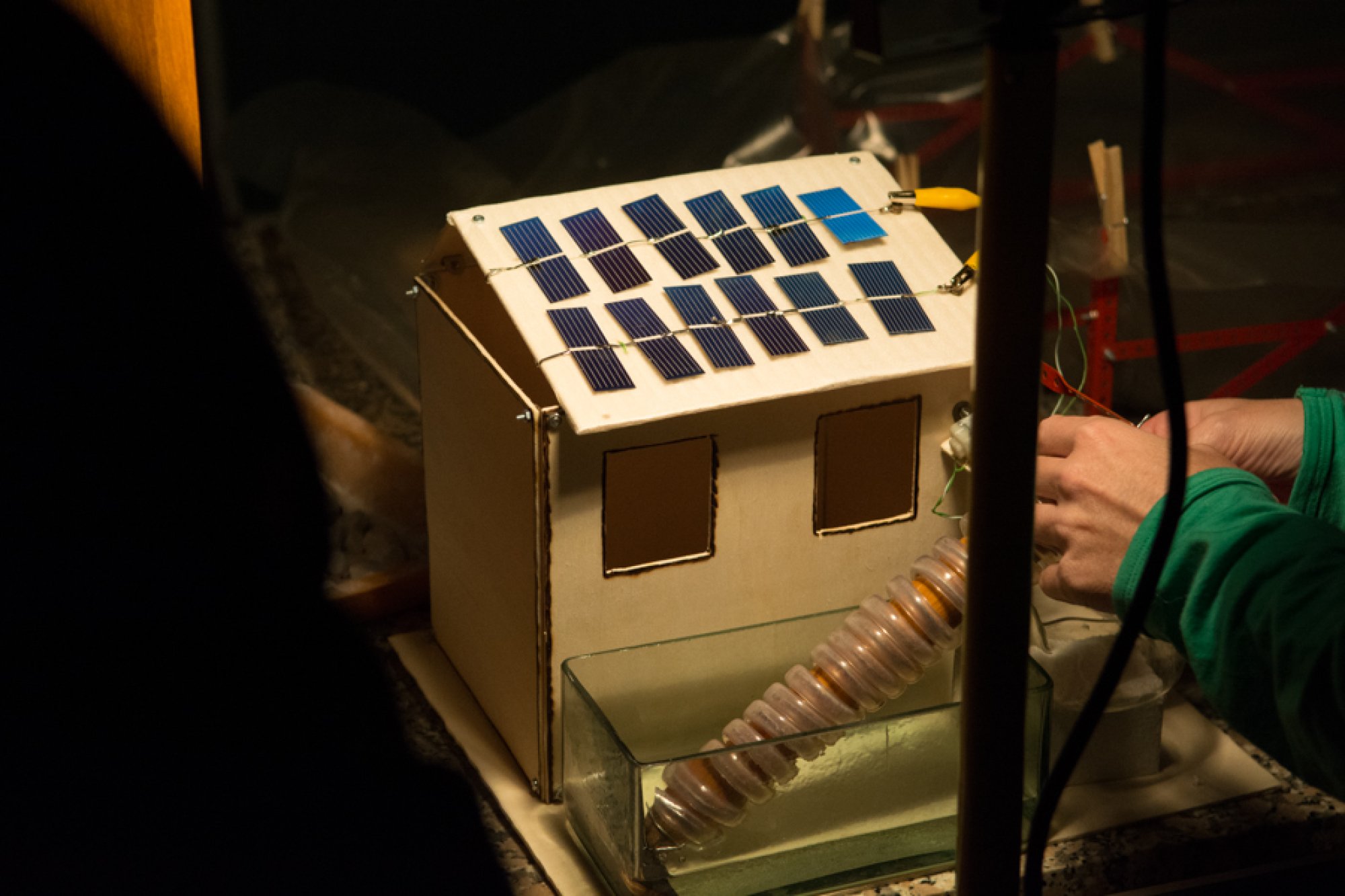 Vladan Trhlík z Gymnázia Sokolov a Jiří Koubek ze Základní školy Sokolov v soutěži představili vlastnoručně vyrobené miniatury dopravních prostředků (auta a loďky) poháněné solární energií a maketu domu se solárním čerpadlem.