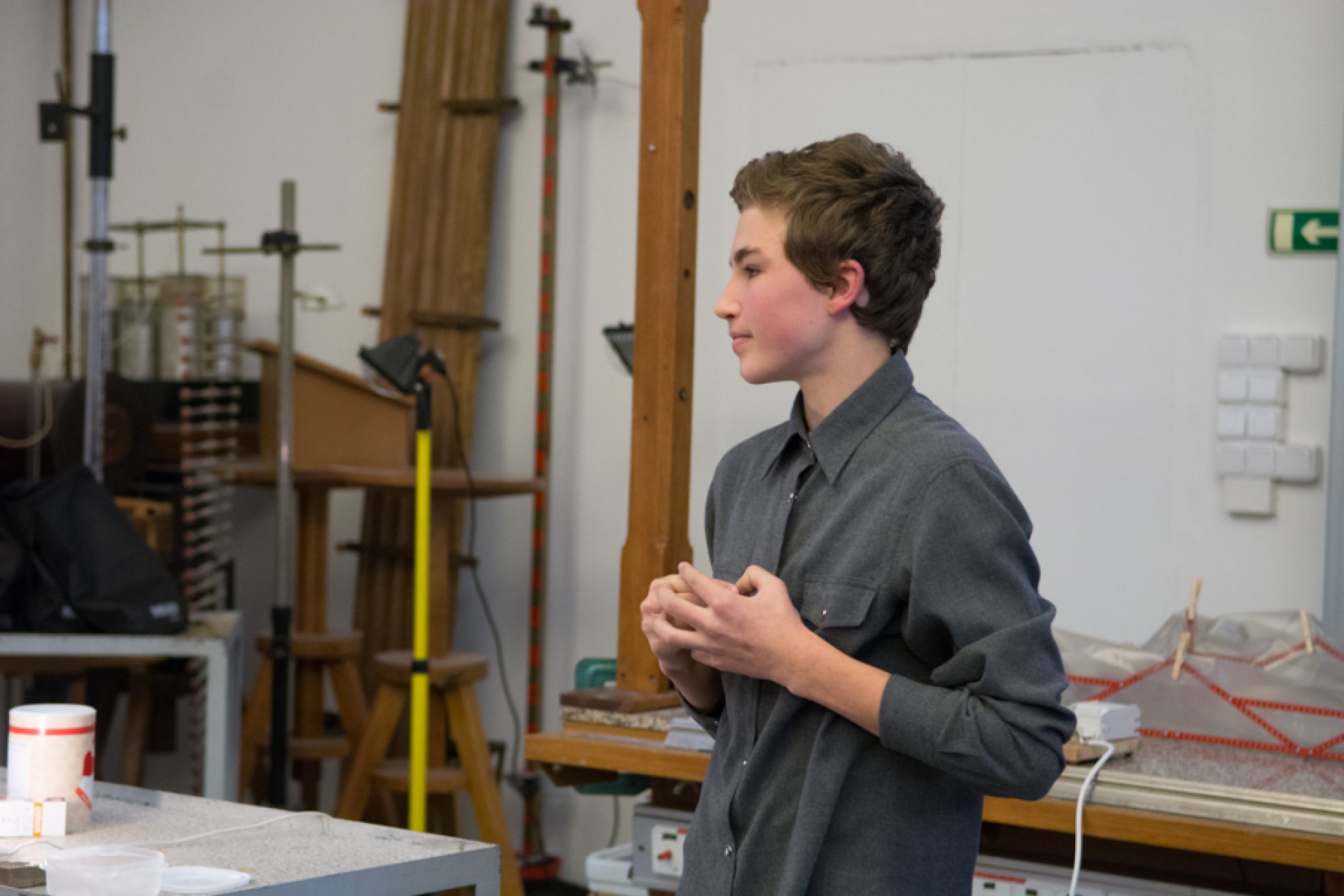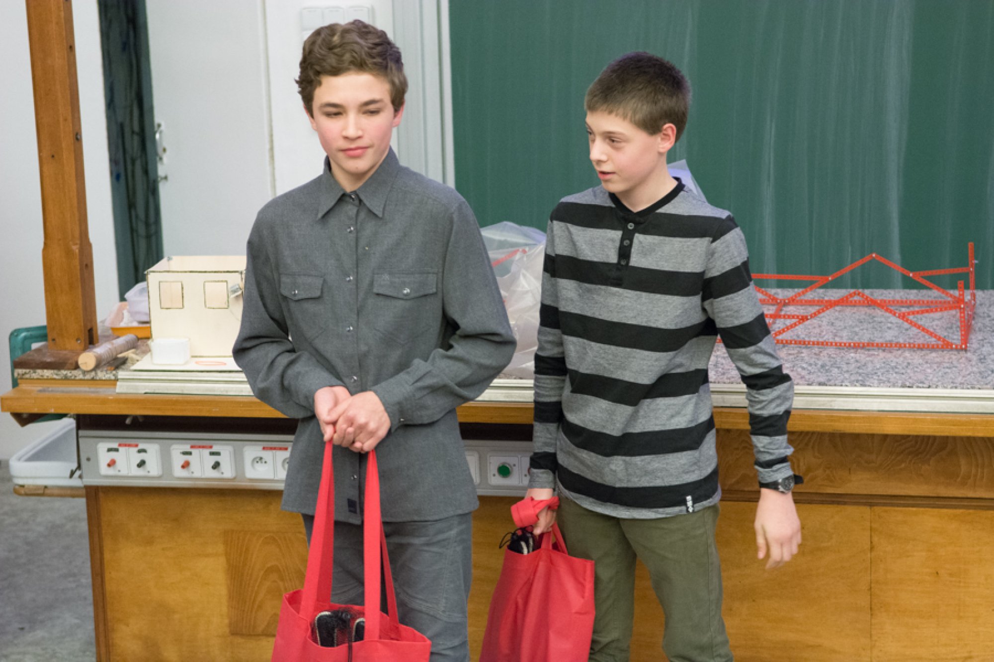 Silné zastoupení mělo v letošním finále Gymnázium Uherské Hradiště, které do soutěže vyslalo hned tři dvojice, z nichž nakonec porota vybrala dva vítěze. Pavel Stojaspal a Vojtěch Lenhart demonstrovali na jednoduché konstrukci potažené plavkovinou model časoprostoru.
