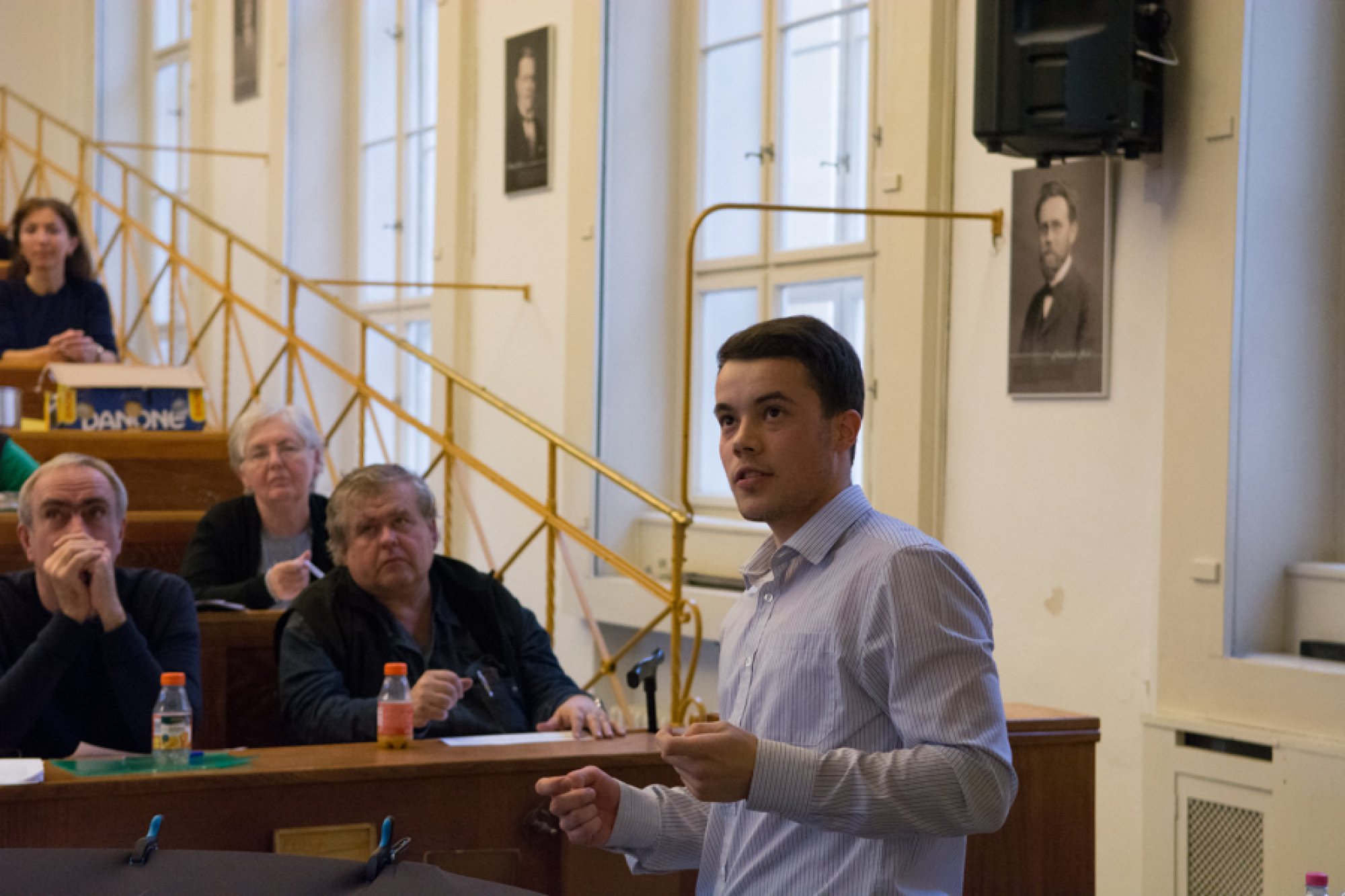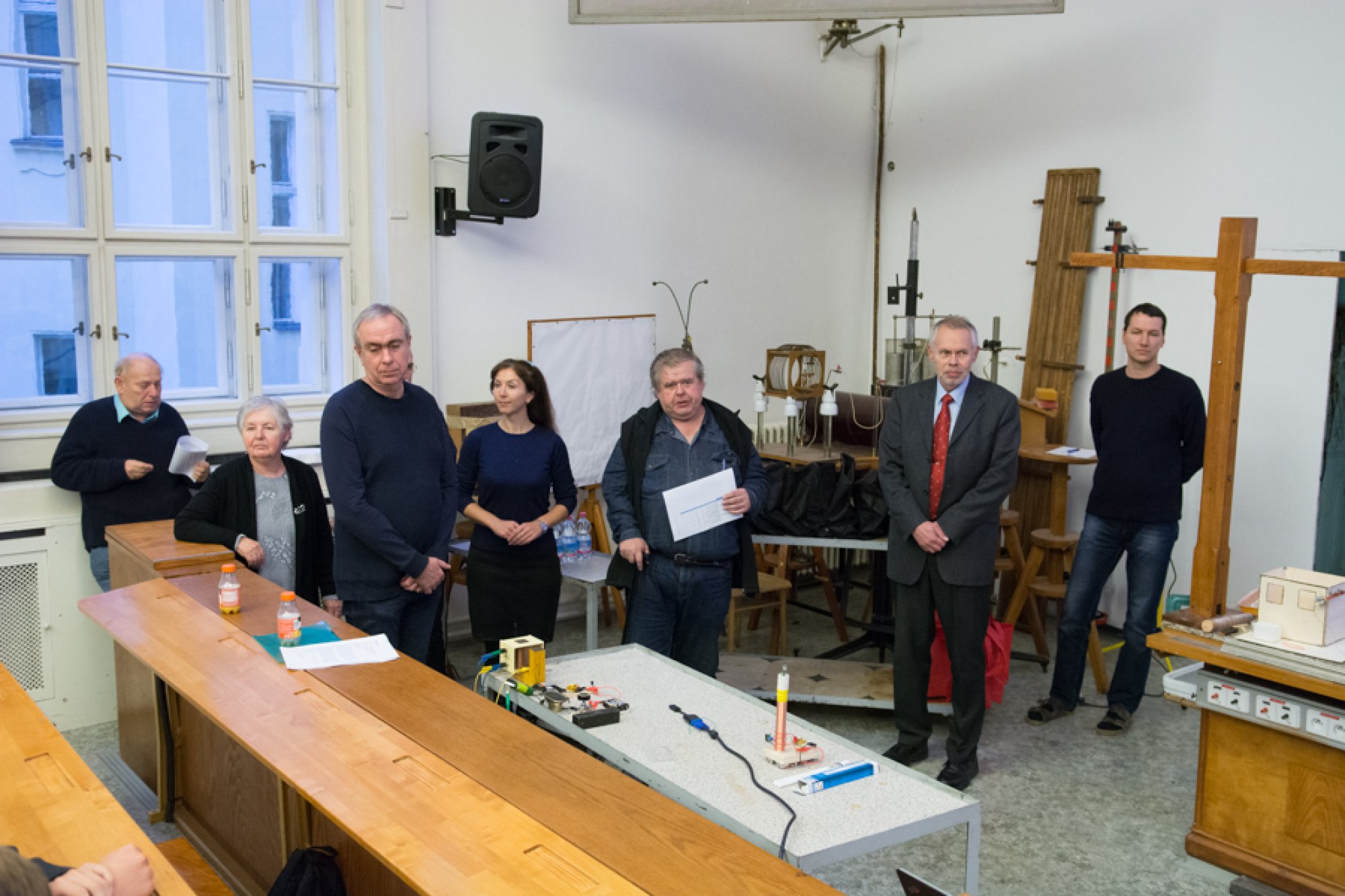 Finalisty soutěže, jejich příznivce i učitele přivítal zakladatel soutěže a předseda poroty doc. Pavel Svoboda. Po krátkém úvodním slovu proděkana pro fyzikální sekci prof. Vladimíra Baumruka už prostor posluchárny plně ovládli studenti se svými experimenty.