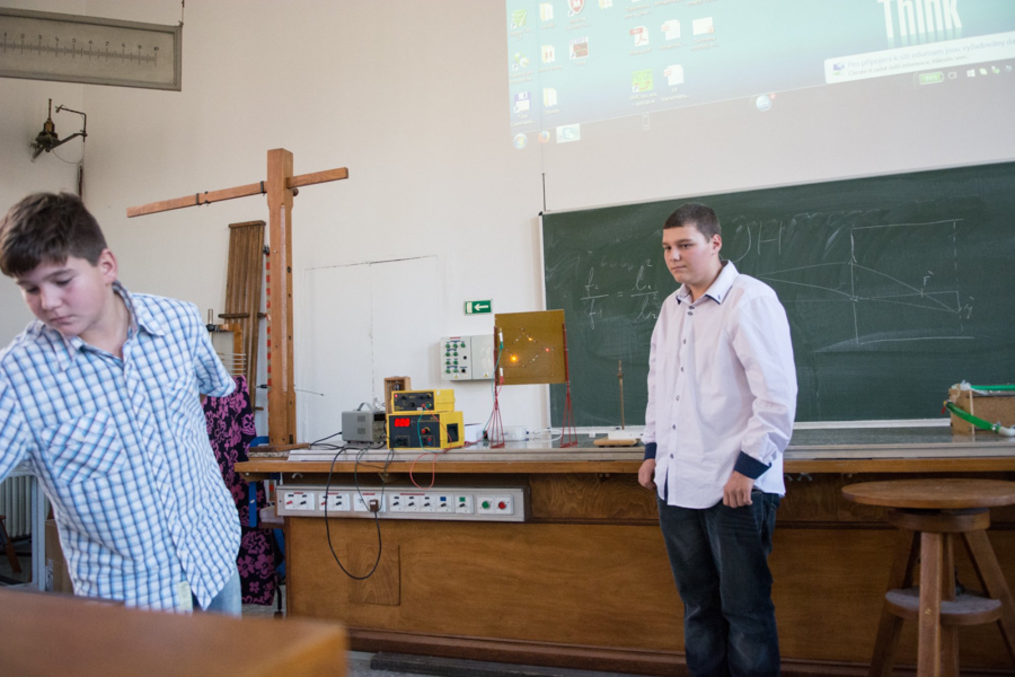 Třetí sadu pokusů prezentovali studenti septimy Petr Vitovský a Ondřej Mikulášek. S pomocí několika snadno přenosných pokusů nadšeně ukazovali, jak jednoduše a s využitím několika málo dostupných součástek je možné předvést různé fyzikální jevy. Prezentovali nápady, jak předvést například vodivost nebo fosforescenci. Kromě toho také zahráli na hudební nástroje a demonstrovali zvukový zpožďovač. Ten si s trochou šikovnosti dokáže každý sestavit ze součástek, které má běžně doma.