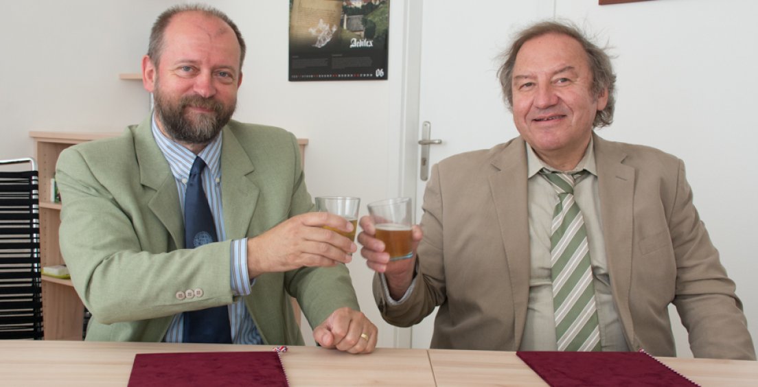 Partnerský program MFF UK sdružuje především komerční společnosti a instituce za účelem výukové činnosti fakulty s přesahem do vědecko-výzkumné činnosti. Cílem programu je vytvoření dlouhodobého smluvního rámce spolupráce. Děkan MFF UK prof. Jan Kratochvíl a ředitel Výzkumného ústavu pivovarského a sladařského RNDr. Karel Kosař, CSc., podepsali partnerskou smlouvu v úterý 7. června. Ve slavnostní chvíli nechyběl ani symbolický přípitek sklenkou vychlazeného piva.