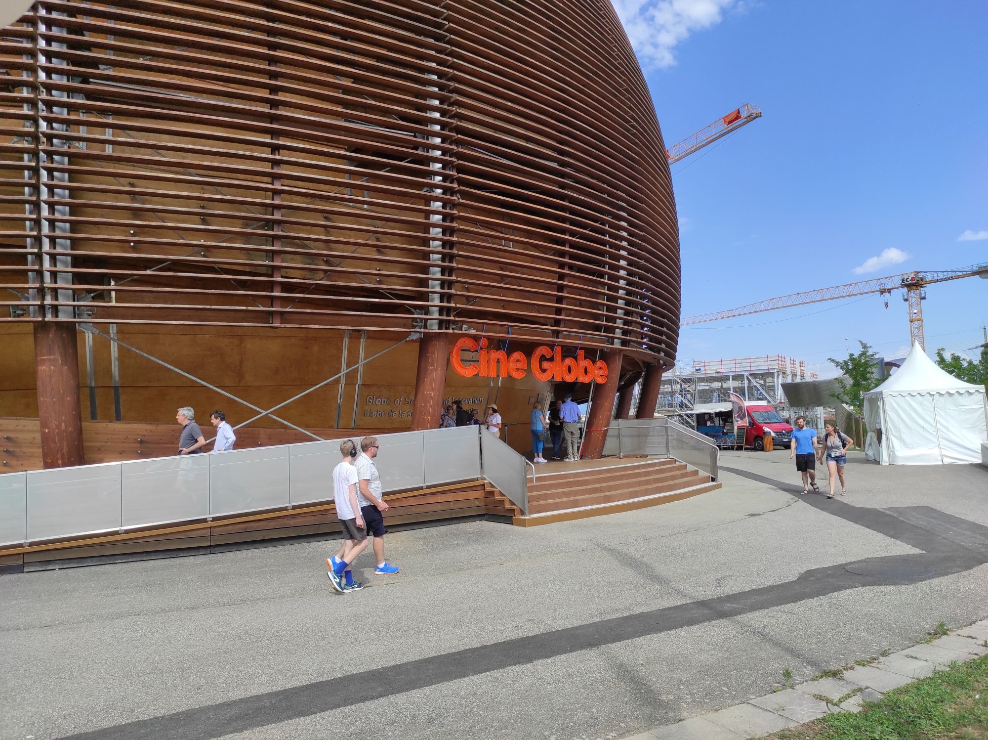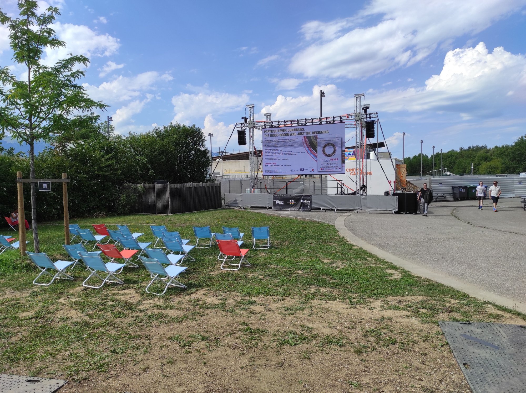 Z bohatého dalšího dění nemohu opomenout ještě jednu akci, které jsem věnoval neděli. Bylo to zakončení filmového festivalu CineGlobe, který se konal od 29. června do 3. července tady v CERN, v impozantní dřevěné budově zvané The Globe. Právě v rámci zakončení festivalu se promítal dokumentární film Particle Fever mapující okolnosti zahájení provozu LHC a objevu Higgsova bosonu. Pozoruhodná byla následující debata, kdy hlavní aktéři filmu, včetně ředitelky CERN Fabioly Gianotti či profesorky Dunfordové z Heidelbergu, diskutovali s publikem o své tehdejší roli, pocitech i výhledech částicové fyziky v CERN pro další desetiletí. Na závěr akce si Fabiola Gianotti našla trochu času speciálně pro studenty. Několik fotografií a krátké rozhovory. Další z nezapomenutelných zážitků z místa, které člověka postupně donutí, aby vnímal i zcela mimořádné zážitky a dojmy jako denní rutinu.