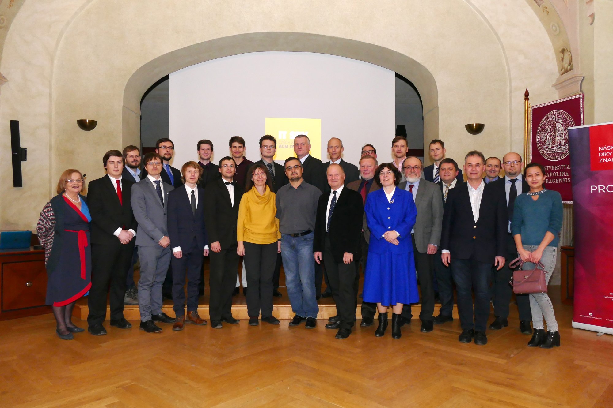 Slavnostní předání cen a také symbolických šeků v hodnotě 1000 eur pro absolutního vítěze a 200 eur pro vedoucího diplomové práce se uskutečnilo ve čtvrtek 6. prosince v Profesním domě na Malé Straně.