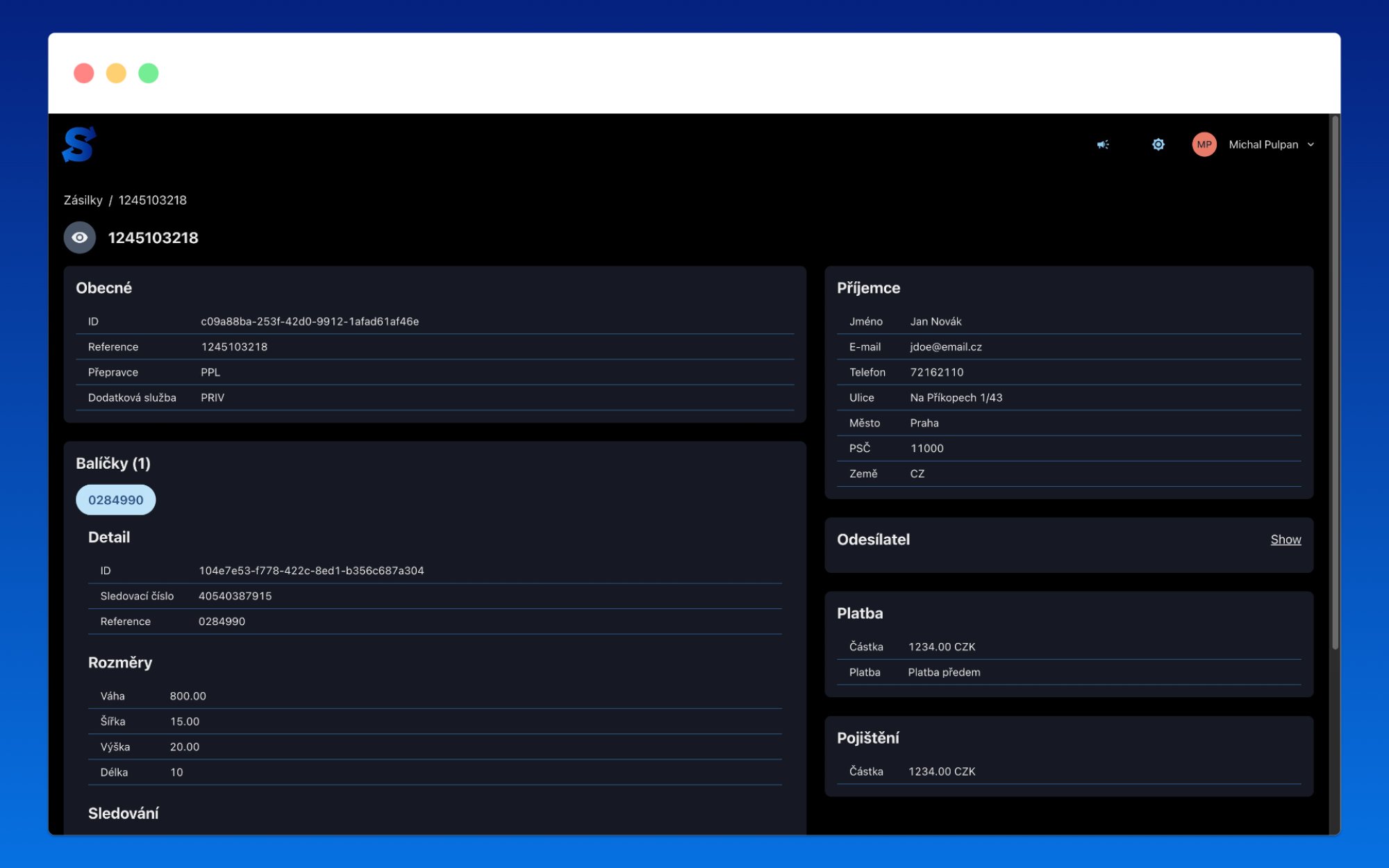 Za nejdůležitější výsledek považuji to, že aplikace výrazně usnadňuje každodenní provoz a přináší reálný užitek napříč celou firmou. Od prvního kontaktu se zbožím ve skladu až po fakturační oddělení, kde se kontrolují (a případně reklamují) nedoručené zásilky, a také při efektivnější synchronizaci vyúčtování s přepravními společnostmi.