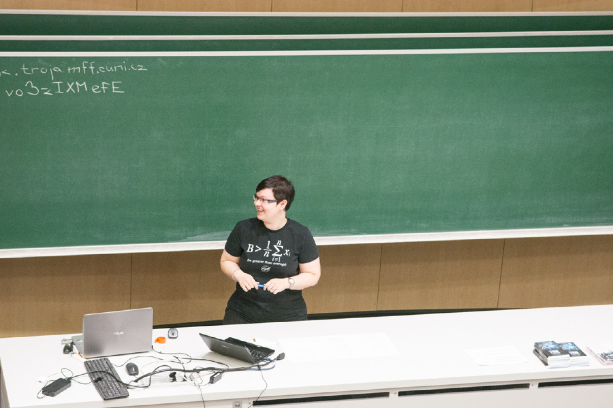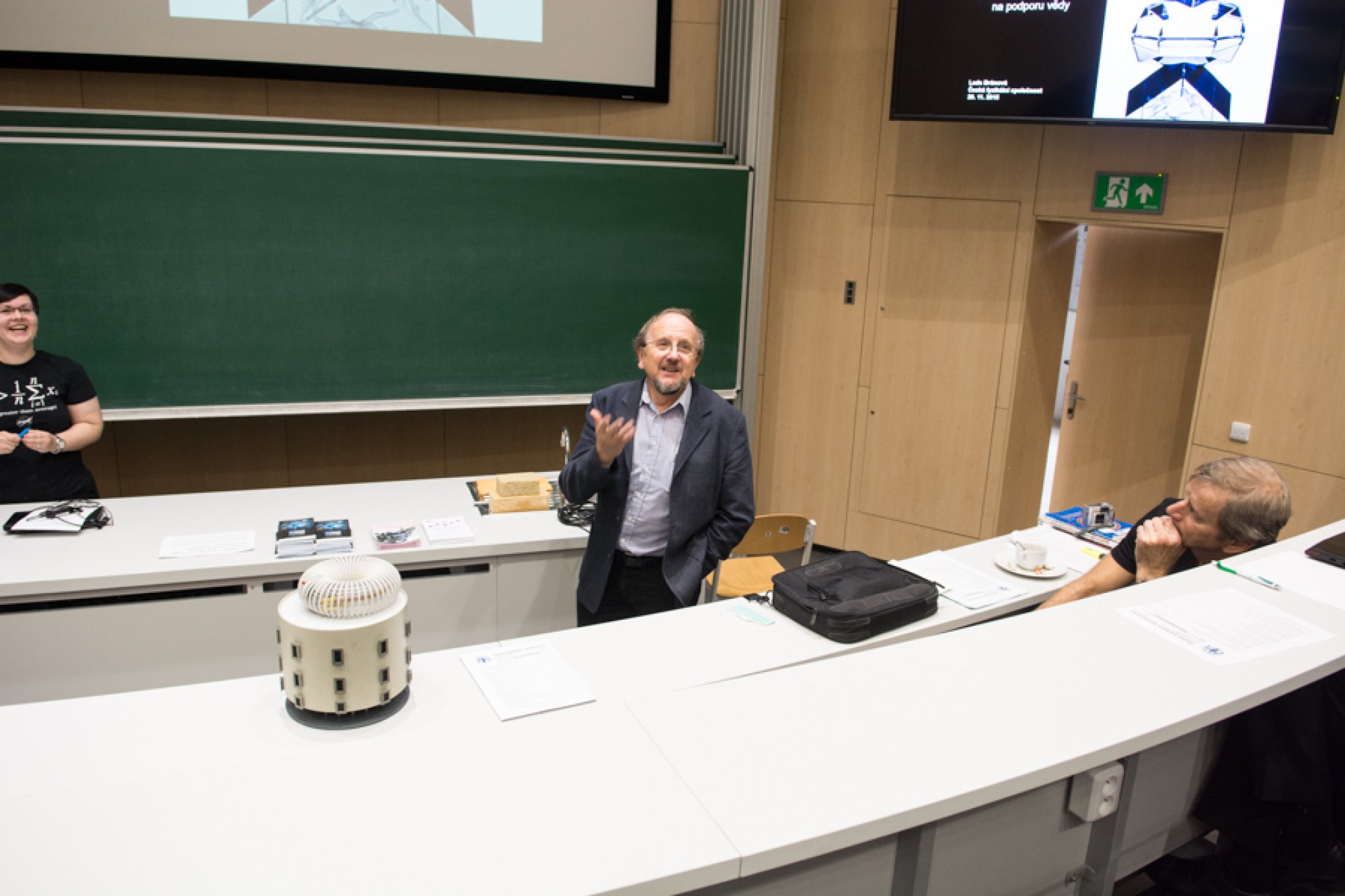 Trojská posluchárna T1, kde do lavic obvykle zasedají posluchači přednášek s převážně fyzikální tematikou, hostila v pátek 20. listopadu Soutěžní přehlídku významných činů ve zpřístupňování fyziky veřejnosti. V režii České fyzikální společnosti se tu předváděly aktivity popularizující fyziku a astronomii na české scéně.