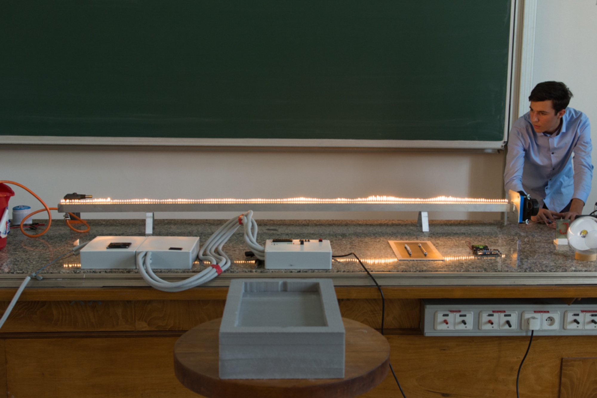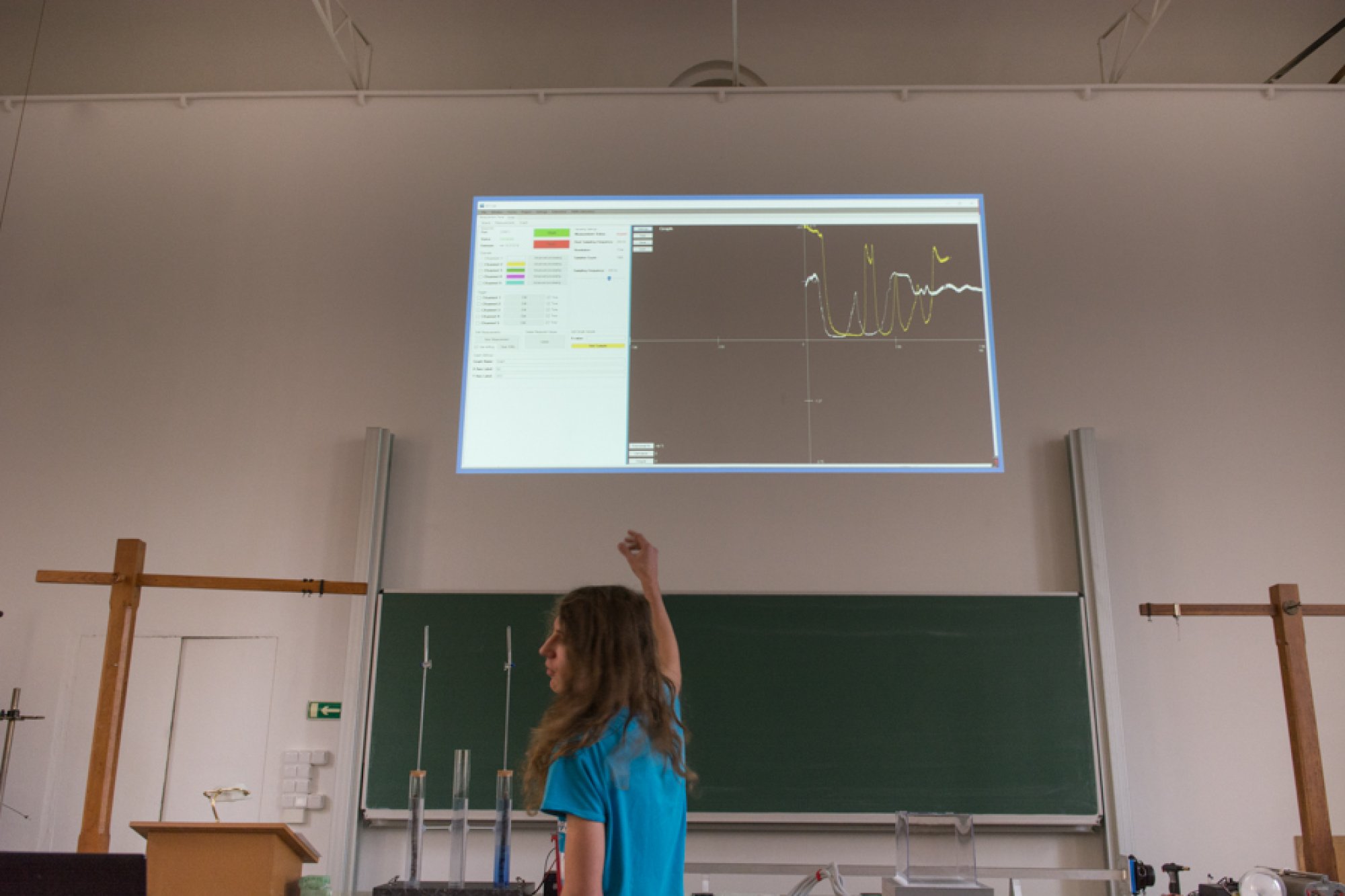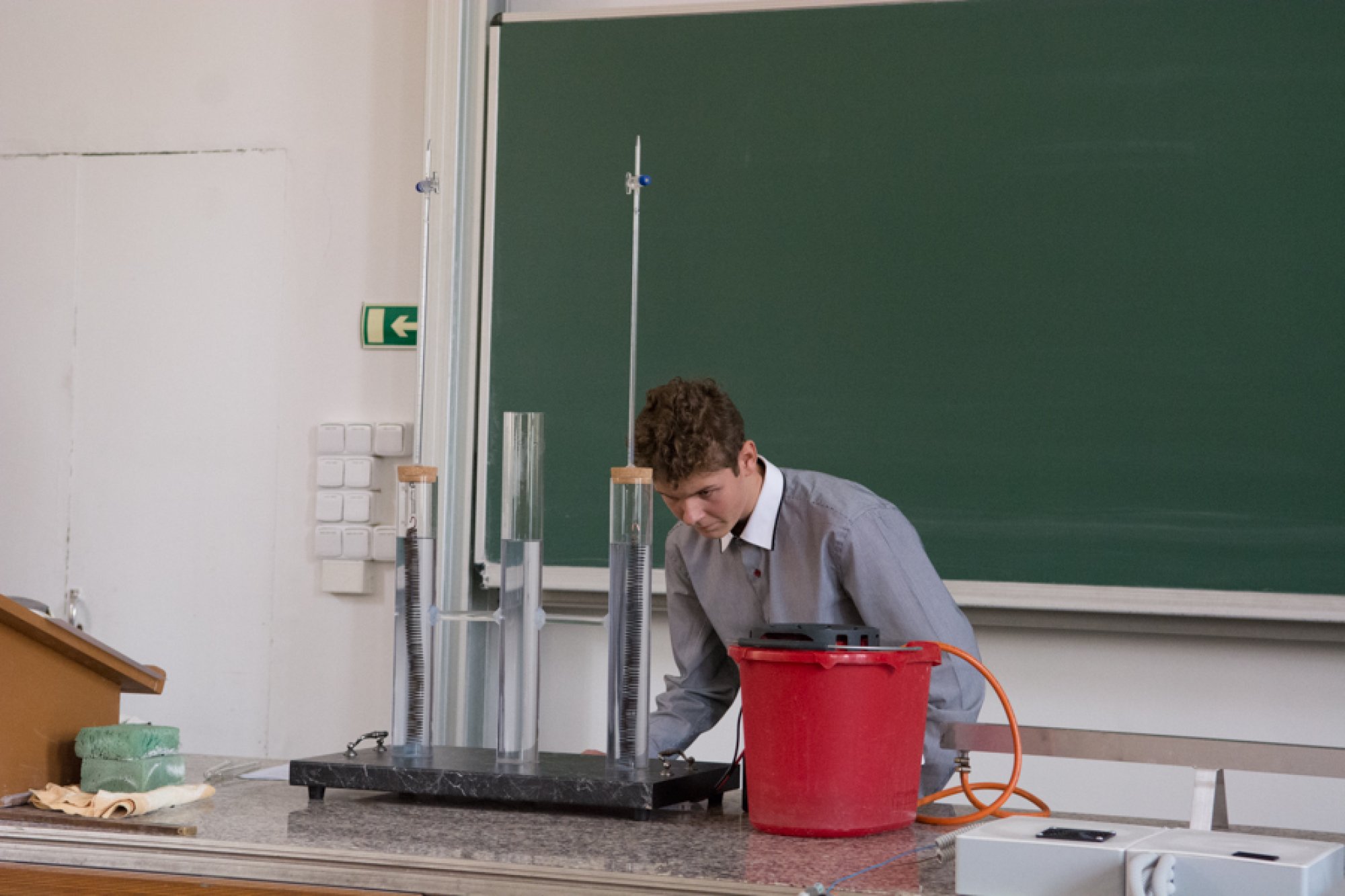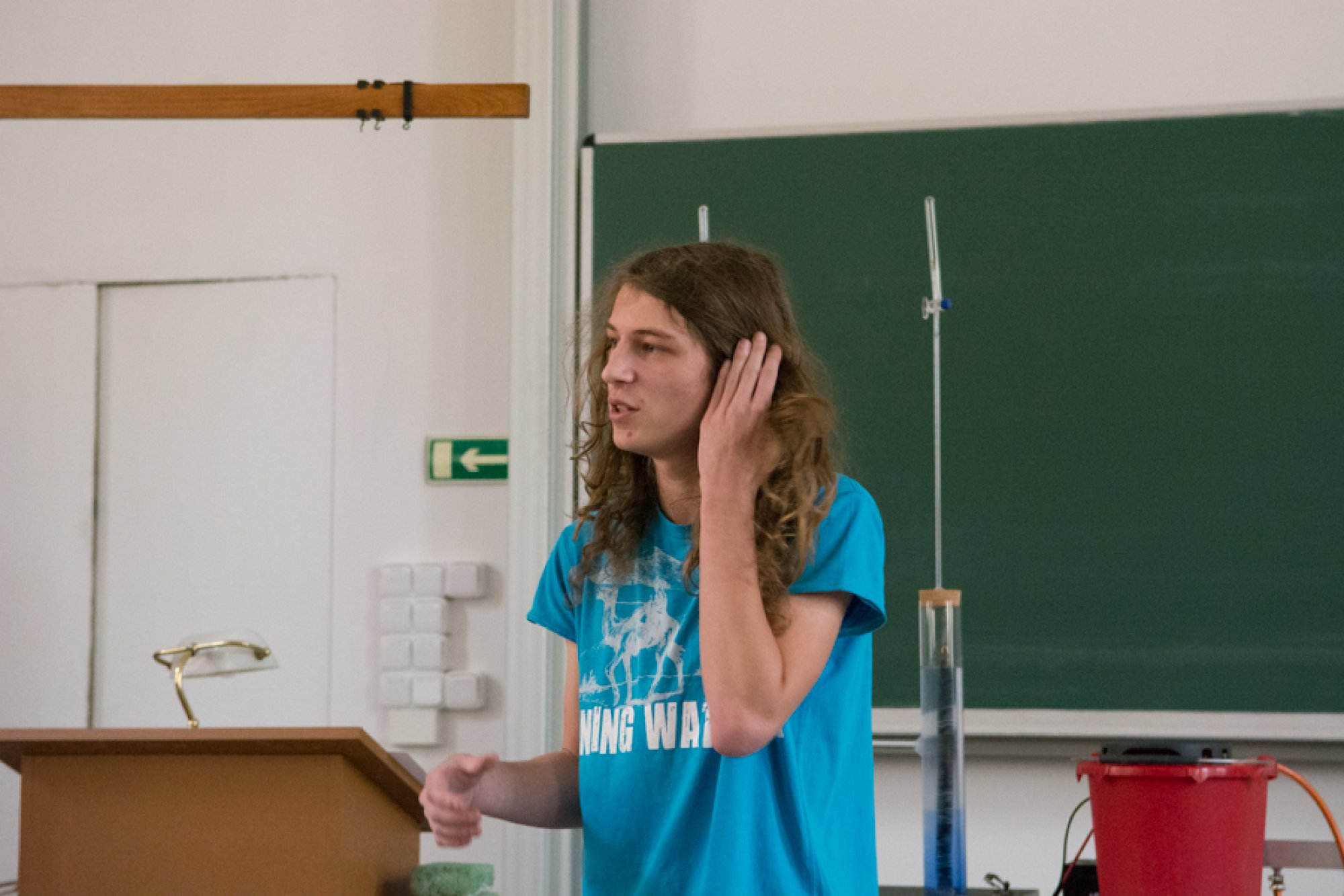 Princip Rubensovy trubice, která pomocí plamínků hořícího plynu zobrazuje akustický tlak, pak přiblížil Jakub Dvořák ze Střední průmyslové školy sdělovací techniky Panská v Praze. Mimo soutěž se představil také projekt zviditelnění zvuku pomocí Teslova transformátoru, na němž pracuje Jakub Marek z Gymnázia Ch. Dopplera v Praze.