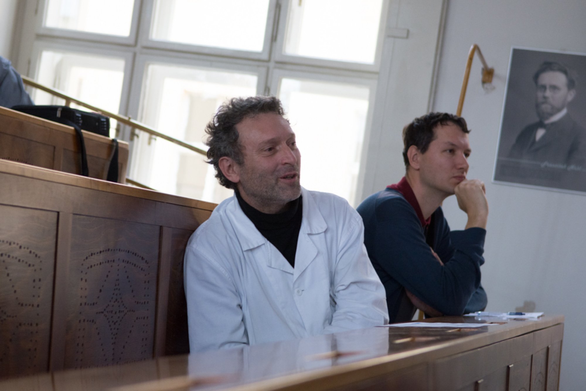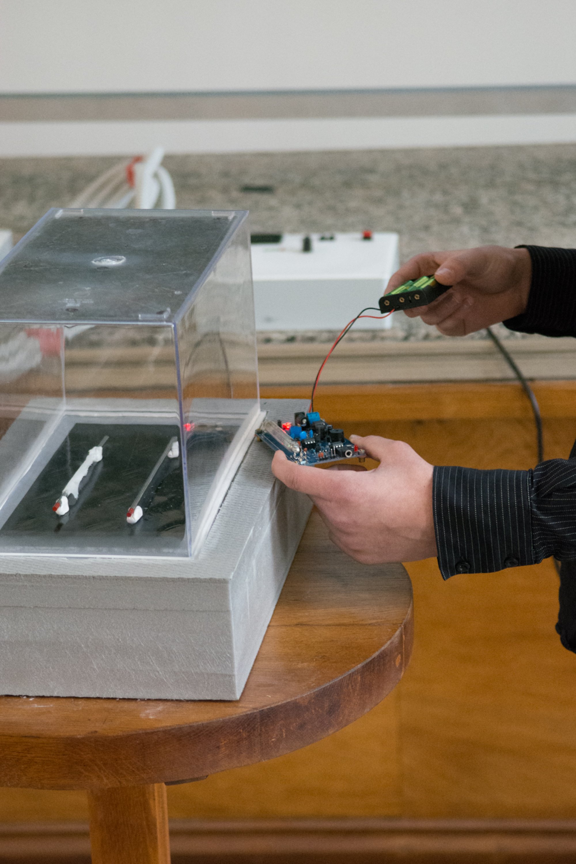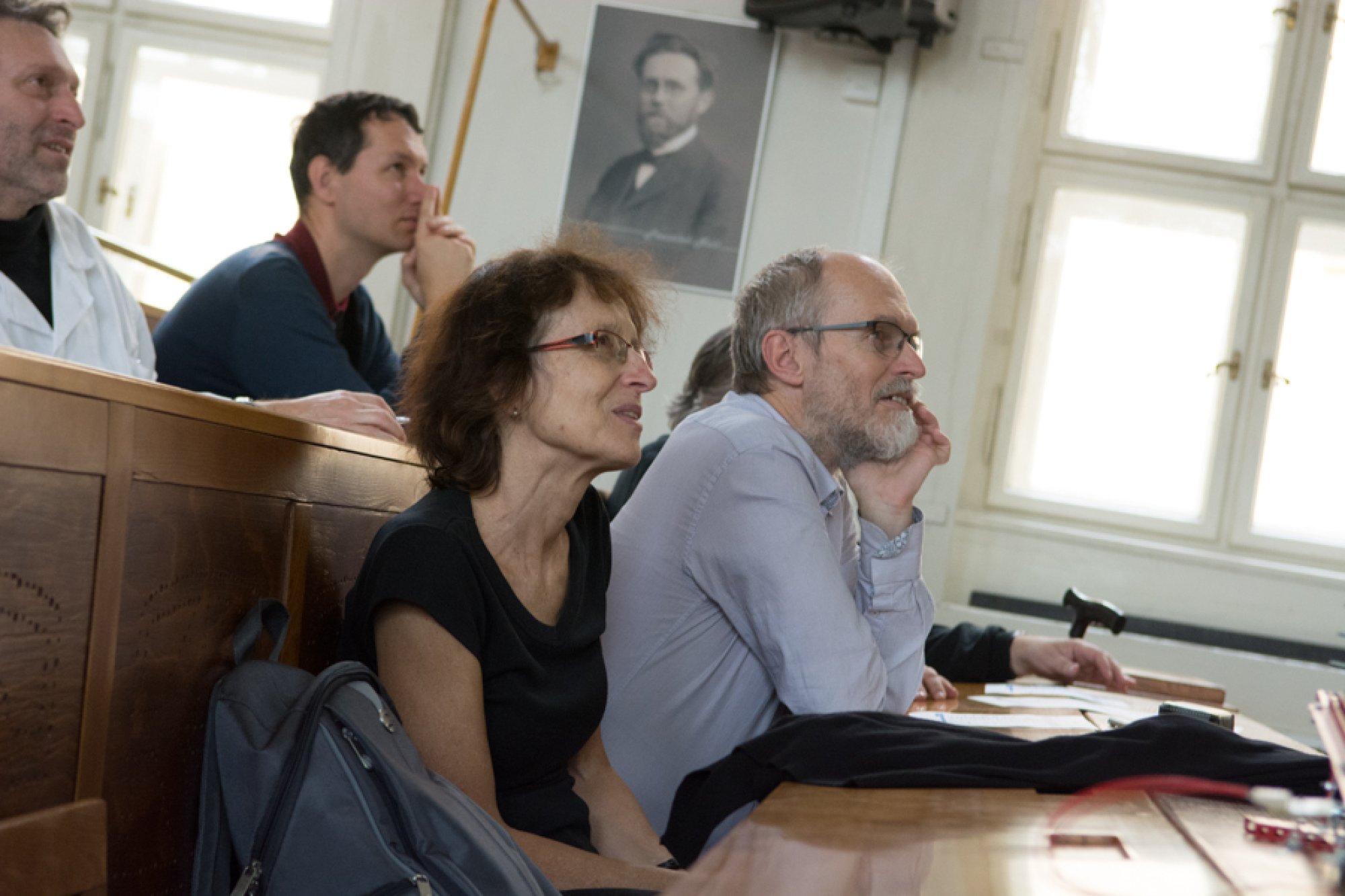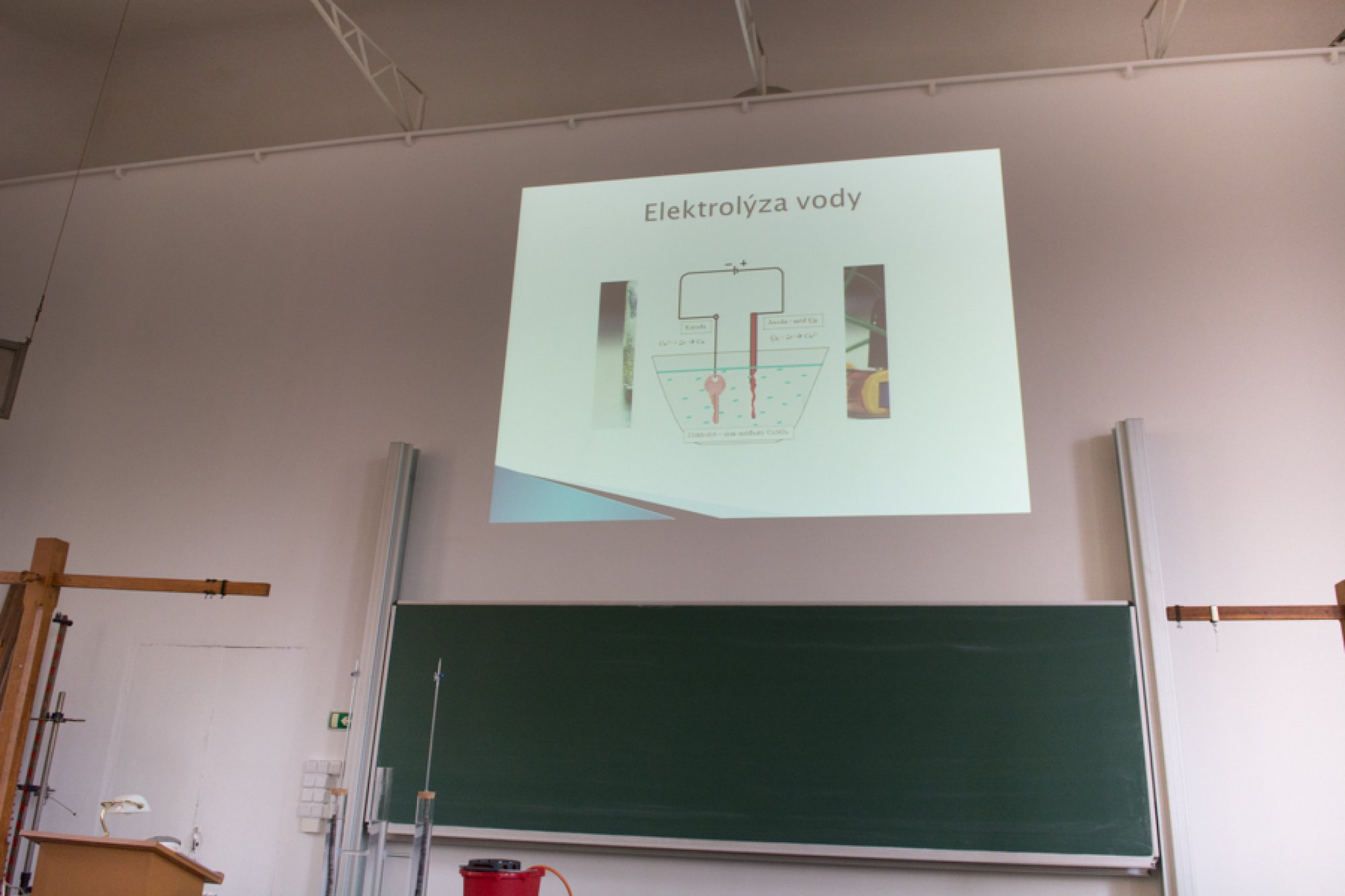 Kamil Mudruňka z pardubického Gymnázia Dašická už několik let rozvíjí projekt CSE-Lab. Na Matfyz přijel představit počítačový program určený pro realizaci a vyhodnocování fyzikálních měření ve školních podmínkách. Aleš Socha z Gymnázia a SOŠ ve Frýdku-Místku zase vytvořil aparaturu určenou k demonstraci elektrolýzy vody, fyzikálního jevu, který probíhá na elektrodách ponořených v roztoku při průchodu stejnosměrného elektrického proudu.