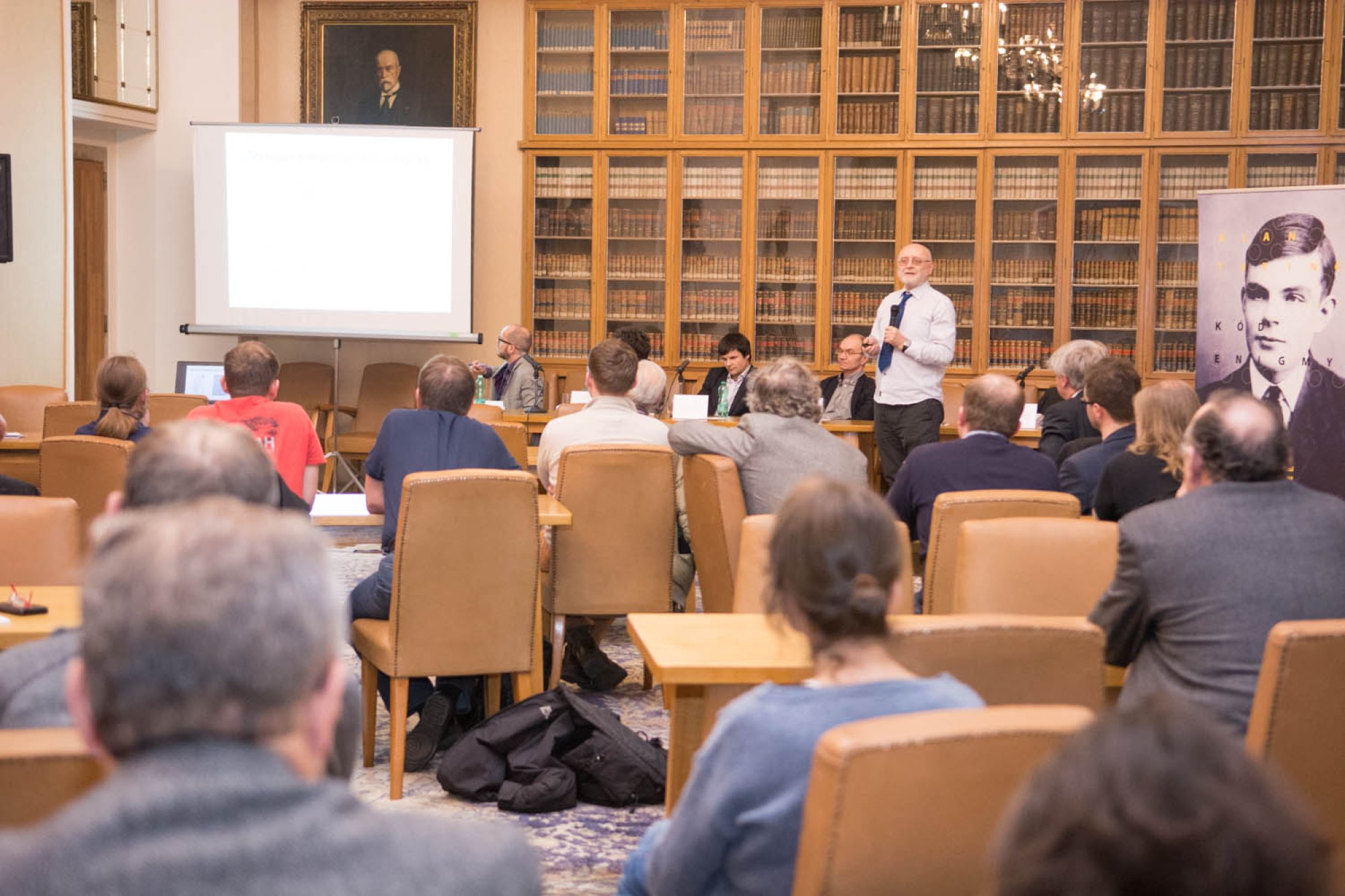 Spíše osobní a historický úvod rozvinul doc. Antonín Kučera z Katedry teoretické informatiky a matematické logiky MFF UK pohledem na Turingovu odbornou práci. Připomněl koncept prvních moderních počítačů, v nichž nelze na pohled odlišit data od programu a naopak. Snadné přeprogramování a z toho plynoucí univerzálnost jim otevřely cestu k úspěchu. Vlastně jednoduché, ale v tom právě geniální řešení, překonalo těžkopádné „počítací stroje“ konstruované většinou pro konkrétní typ úloh. Idea tzv. Turingova stroje se přitom objevila jako vedlejší produkt řešení filosofických problémů matematiky v polovině 30. let 20. století. Současný počítač je proto neustálou připomínkou významu základního výzkumu, který řeší jen zdánlivě abstraktní problémy.