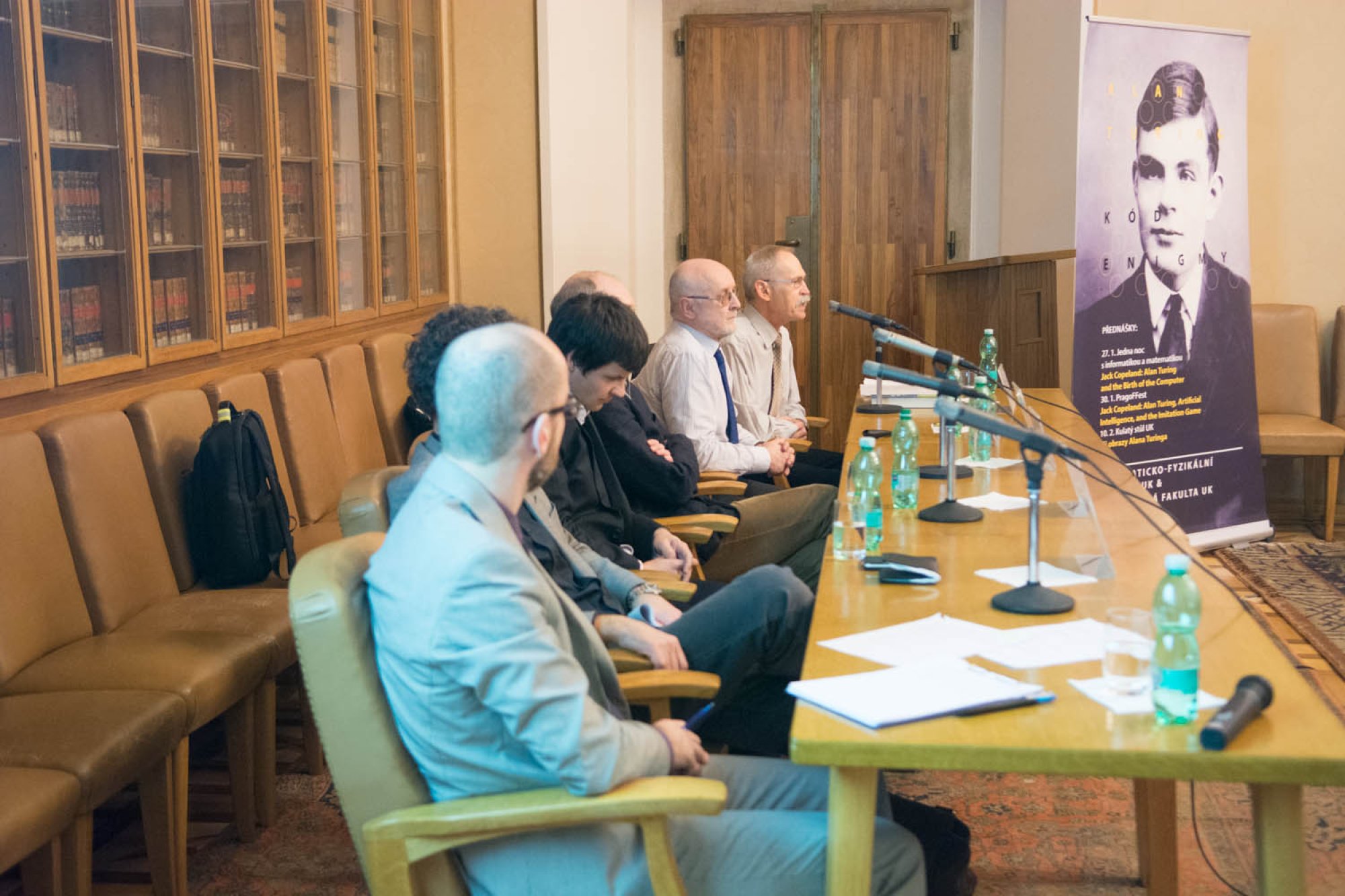 Téměř dvouhodinovou panelovou diskusi zahájil dr. Jan Bičovský z Ústavu srovnávací jazykovědy FF UK. Představil osobnost Alana Turinga v historických souvislostech druhé světové války i poválečného vývoje. Turing naprosto zásadně přispěl prolomením německého kódu Enigma k vítězství spojenců ve druhé světové válce. Velká Británie ho však v 50. letech minulého století přesto odsoudila za „nemravné chování“ a jako homosexuála donutila k chemické kastraci. Krátce na to spáchal s největší pravděpodobností sebevraždu. Všechny omluvy přišly až půlstoletí po jeho skonu.