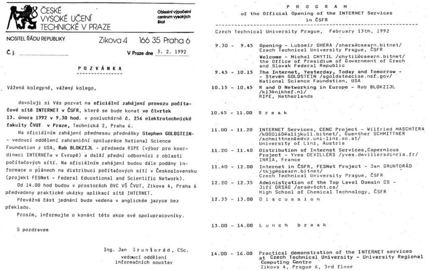 Po sérii testů mohl být internet poprvé oficiálně představen české veřejnosti. Došlo k tomu ve čtvrtek 13. února 1992 v posluchárně Fakulty elektrotechnické ČVUT v pražských Dejvicích. Tam se na pozvání Jana Gruntoráda, tehdejšího vedoucího oddělení informačních soustav Oblastního výpočetního centra vysokých škol a pozdějšího ředitele sdružení CESNET, sjeli odborníci z různých institucí včetně zástupce americké National Science Foundation, která udělovala souhlasy k připojení.