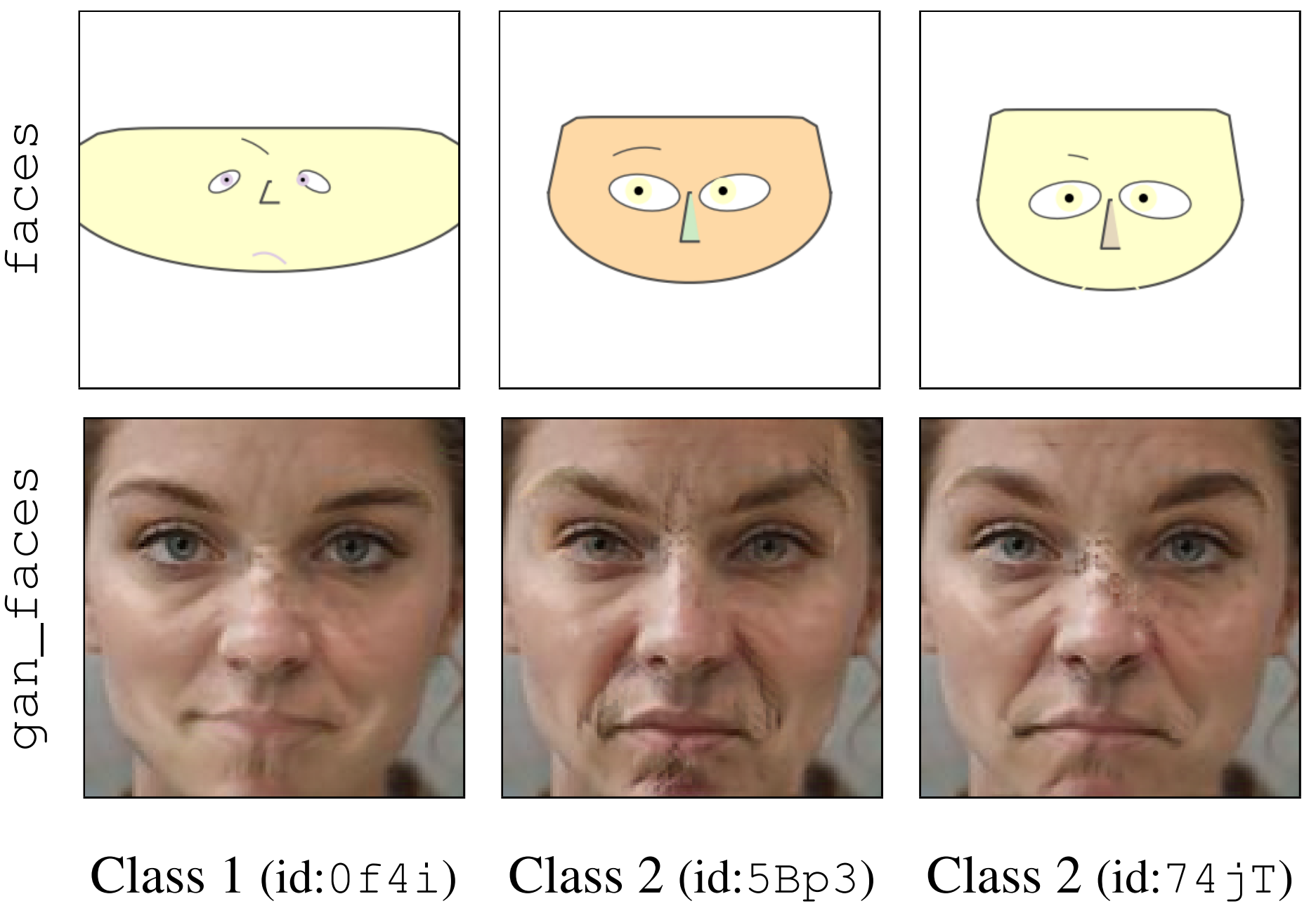 Chernoff faces je metoda, jak vizualizovat vícerozměrná data, která vznikla v 70. letech minulého století a vychází z myšlenky, že lidský mozek dokáže dobře vnímat tváře. Data jsou pomocí této techniky zobrazována jako obličej, jehož tvar a rysy odpovídají hodnotám proměnných. „Sémantika původních nevizuálních dat se v těch jednodušších cartoon-obličejích kóduje např. velikostí a rozmístěním očí, barvou obličeje, šířkou hlavy, tvarem nosu apod. A protože člověk je evolucí vycvičen vnímat obličej komplexně, je schopen různá komplexní data vidět jako různé obličeje a na základě toho si segmentovat datový prostor, aniž by musel úmorně interpretovat různé parametry, které k té komplexitě přispívají. Jinými slovy, když uživatel mrkne okem na matici různých obličejů, okamžitě má hrubou představu o distribuci dat v prostoru. Samozřejmě, že jednotlivé grimasy obličeje nemají jednoduchou interpretaci, pouze umožňují rozlišovat různá data od sebe, případně shlukovat na základě podobnosti grimas. Totéž se děje v případě GAN faces, jenom je to celé složitější. Zajímavé je, že jak lidští uživatelé, tak AI agenti (strojové modely) jsou schopni ‚vidět‘ v takových reprezentacích podobné vlastnosti, tedy rozlišovat sémantiku v původních datech podobně,“ říká prof. Skopal.