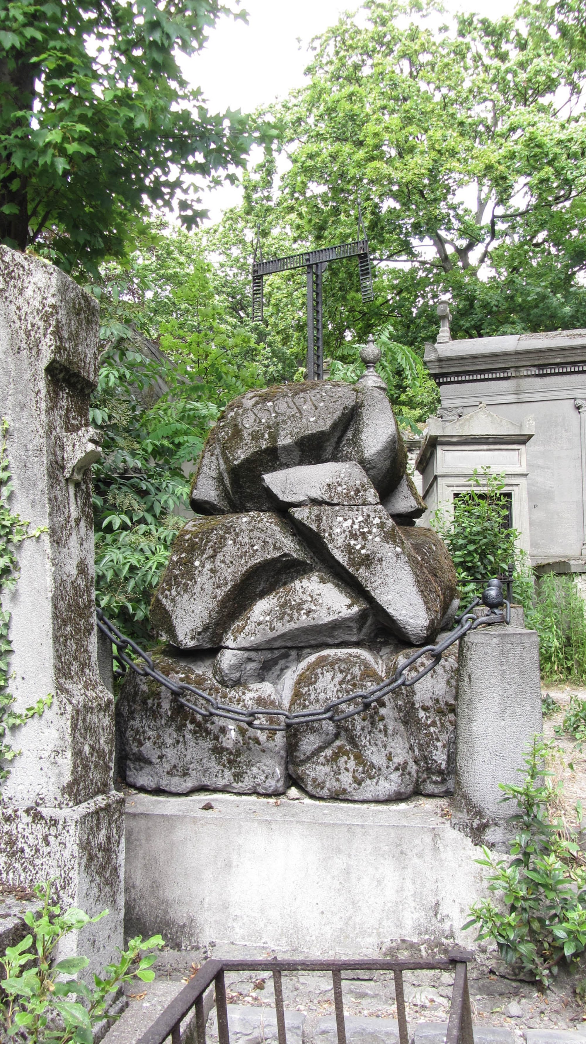 Ne úplně jednoduše lze podle oficiální mapky hřbitova nalézt ve 29. oddělení hrob „vynálezce telegrafu“, jímž je Claude Chappe (* 25. 12. 1763, Brûlon, Francie; † 23. 1. 1805, Paříž, Francie). I když bychom spíše měli za vynálezce telegrafu považovat anglického génia Roberta Hooka (* 18. 7. 1635, Freshwater, Ostrov Wight, Velká Británie; † 3. 3. 1703, Londýn, Velká Británie), rozšíření vynálezu čekalo více než sto let na mladého Francouze. Jeho systém se skládal z věží a pohyblivých ramen, kombinacemi bylo možno kódovat téměř 200 znaků. Tento systém převálcoval až o dalších zhruba 60 let později telegraf elektrický a Morseovu abecedu. Chappeho hrob je zajímavě řešený a stojí za zhlédnutí (foto č. 5). Pozor, v některých průvodcích je napsáno, že jeho hrob je v oddělení 3.