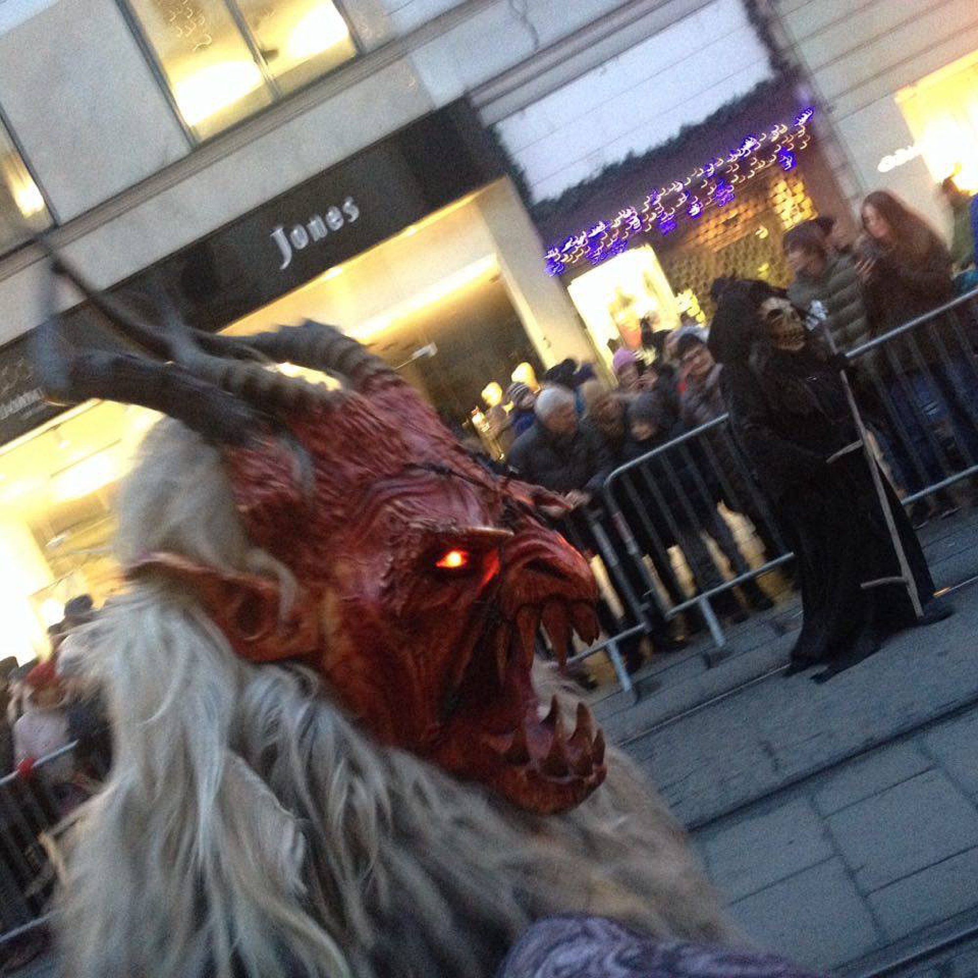 Obdobu našeho Mikuláše můžeme v Rakousku zažít při Krampuslaufu. Poprvé jsem o něm slyšela před rokem a nemohla jsem se dočkat, až ho uvidím na vlastní oči. V případě Grazu jde o dvouhodinový průvod čertů, čarodějnic, andělů smrti a sem tam nějakého Mikuláše. Čerti jsou tu opravdu strašidelní. Na velkou událost se sjíždějí týmy v kostýmech z širokého okolí. Doplňkem k oblekům jsou často motorové pily, obří kraví zvonce, nejrůznější vozítka, dýmovnice a ohnivé show. Zkrátka intenzivní zážitek.