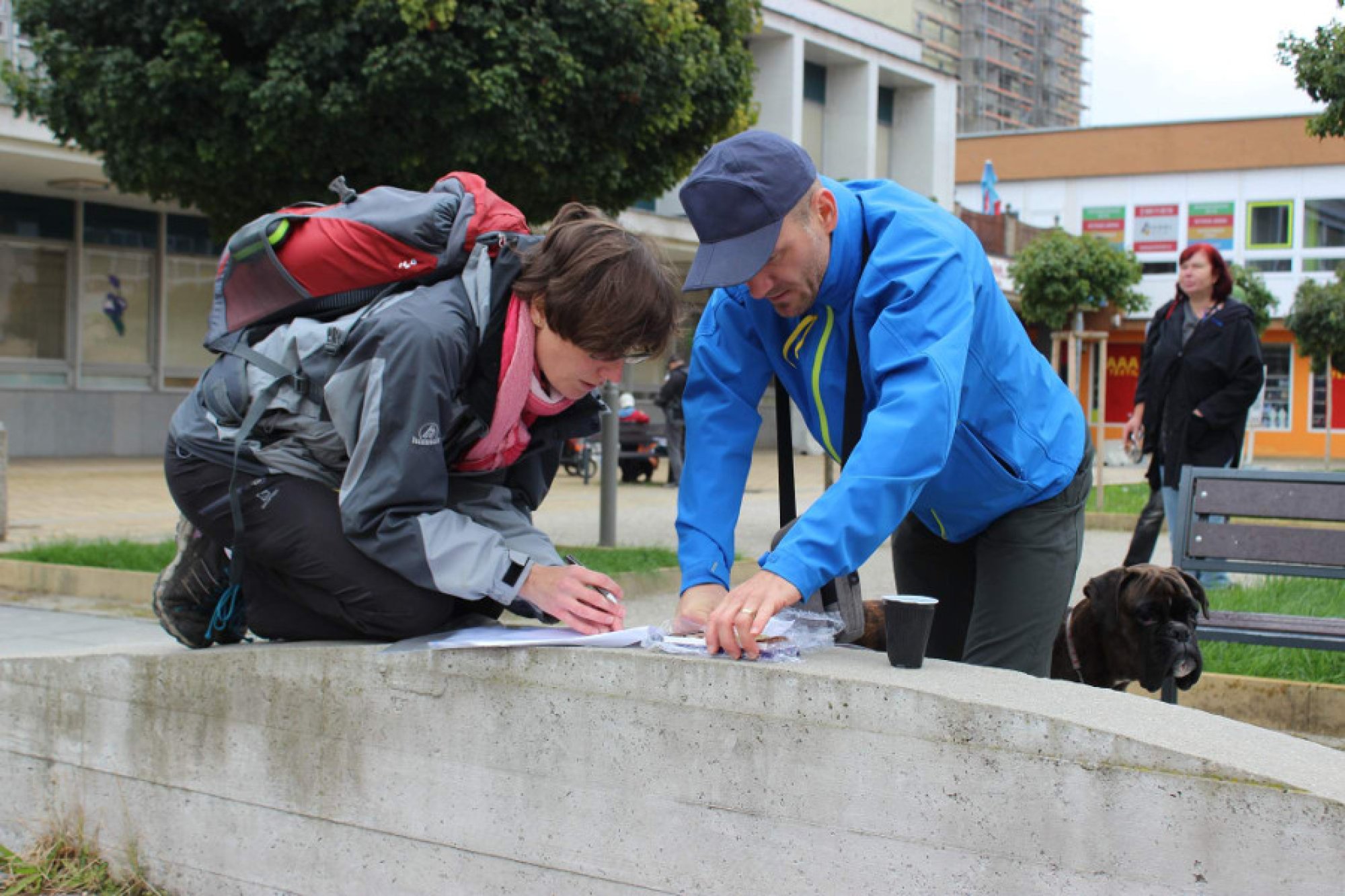 Změna termínu a tradičně špatné počasí se bohužel podepsalo na počtu přihlášených týmů, především v kategorii Začátečníci. Na start v sobotu ale i tak dorazilo přes 65 týmů. Letos jsme neměli k dispozici reproduktor, takže jsme předstartovní informace předávali výhradně silou vlastních hlasivek. Start jsme o pět minut zdrželi, aby se stihla připravit první šifra, a pak hra vypukla.