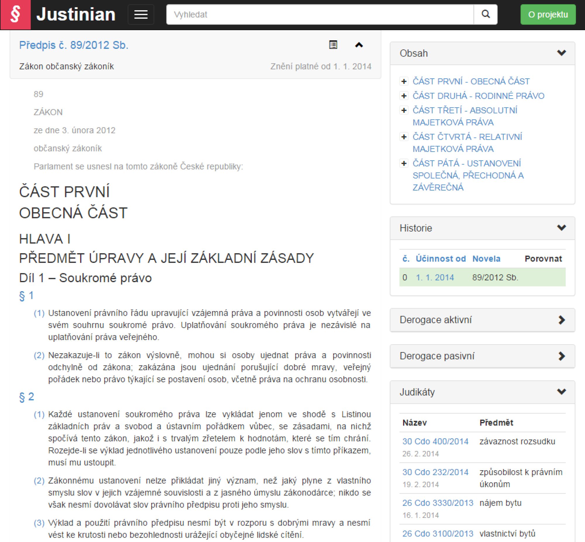 Justinian je aplikace pro vyhledávání a prohlížení právních předpisů, soudních rozhodnutí a souvisejících dokumentů z právního prostředí ČR. Projekt si klade za cíl prezentovat informace ve vzájemných souvislostech a jako zdroj dat využívá tzv. otevřená data, tedy veřejná data volně dostupná na internetu.